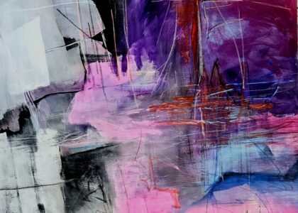 Was es mit diesem rätselhaften Motto auf sich hat, wird sich zeigen. Wie wir sehen, hat Dieter keine toskanischen Landschaftsbilder mitgebracht, sondern abstrakte Werke.