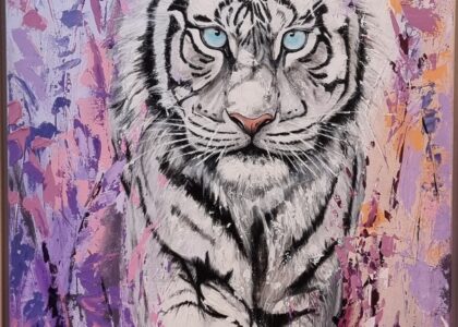 Ihre Werke zeichnen sich durch eine faszinierende Mischung aus abstrakten Hintergründen und detaillierten Darstellungen von Tieren aus. Diese Kombination erlaubt es, die Lebendigkeit der Tiere in einen kontrastreichen und spannungsgeladenen Kontext zu setzen.