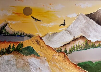 „Ich reise gerne per Rucksack durch die Welt, habe darüber ein Buch geschrieben, sammle Eindrücke, treffe inspirierende Menschen und lerne vor allem von Mutter Natur, der größten Künstlerin überhaupt. Berge, Wasser, Natur, Tiere. Von Pastell bis Neon. Alles das findet sich natürlich auch in meiner Kunst. Deshalb ist sie so bunt, so komplex, organisch und immer wieder neu.“
