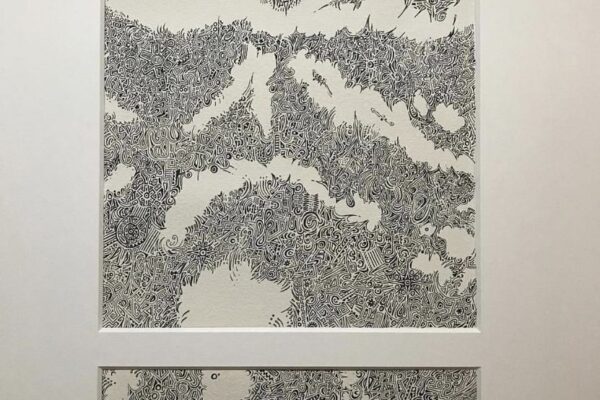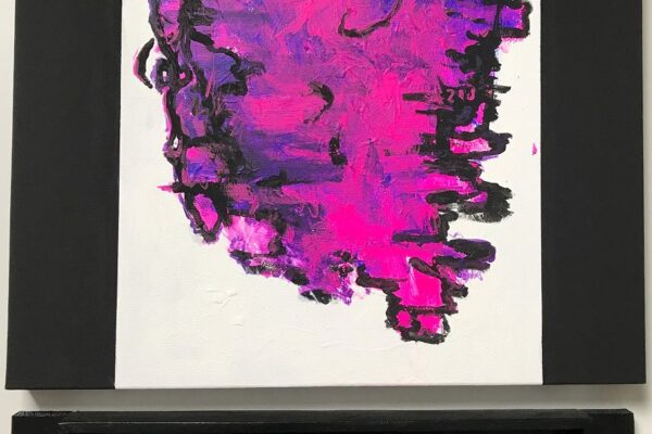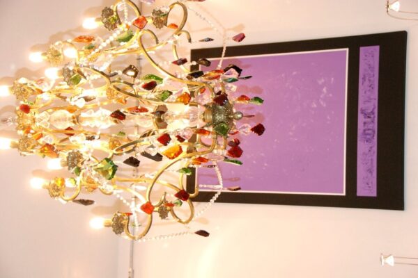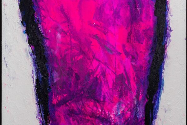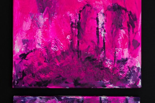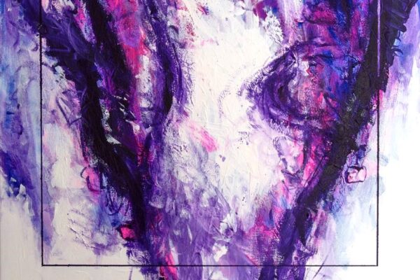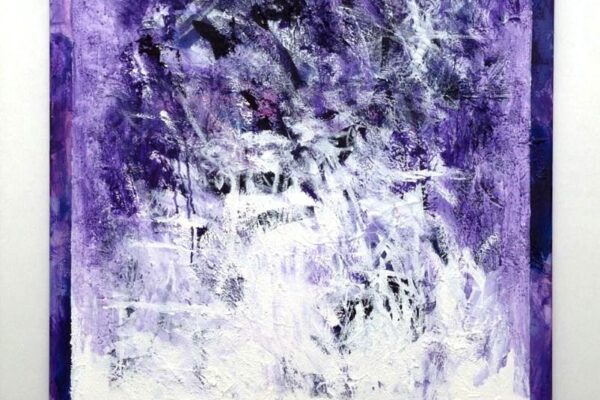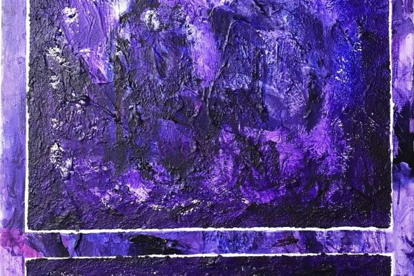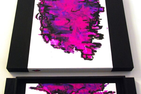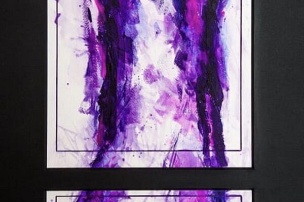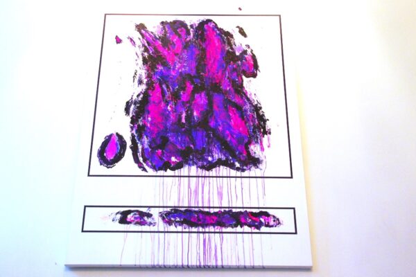 Der Einsatz der Farben durch Martyn ist allerdings weit entfernt von den Begriffen Kommerz und Aktualität. Seine Vorliebe für Lila ist eher hedonistisch. „Schon sehr früh sprach mich dieser Farbton am meisten an. Das geht weit zurück; meine Hunderter-Filzstiftpackungen, die Lila-Farbtöne wirkten magnetisch auf mich. Violett spricht sehr das Unterbewusstsein an. Allgemein verbindet man damit Spiritualität und das Mystische. Es beruhigt mich und hat eine meditative Wirkung auf meine Psyche.“ Die Farbe Violett empfindet Martyn auch als optimal dafür was er mit dem „wie Oben so Unten“ Thema ausdrücken will: Die verkürzte Version -so unser Künstler- lautet wie folgt: „In einer Zeitperiode verschlang ich unzählige Bücher über universelle Prinzipien, Quantenphysik und allgemeine Energie etc. Ich erkannte für mich, dass alles im Universum eine große und kleine Entsprechung besitzt (Mikro-und Makrokosmos). Dieses Prinzip der Entsprechungen und Analogien möchte ich symbolisch in zwei unterschiedlich großen Flächen darstellen: Wie oben-so unten, wie unten-so oben. Wie innen-so außen, wie außen-so innen. Wie im Großen, so im Kleinen. Auf jeder Ebene existiert daher eine Entsprechung, bzw. Polarität. Die Außenwelt erlebe ich somit, wie ich innerlich bin. Man nennt es auch Spiegelgesetz. Wie man sich innerlich verändert, verändert sich alles um einen herum ebenso.(wie innen, so außen, etc.) Damit eng verbunden, ist das Prinzip der Resonanz und Anziehung: Gutes zieht Gutes an, Positivität Positives usw. Daher ist es mir während des Malprozesses äußerst wichtig, mich in einen positiven Zustand zu versetzen, weil diese Energie, bzw. Frequenz weitervermittelt wird, auch wenn es „nur“ subjektiv erfasst wird. Die Farbe Violett (und andere artverwandten Farben) empfinde ich als optimal dafür“. Mit dem Motto der Ausstellung „AS ABOVE SOW BELOW“ nimmt Martyn Bezug auf das 2. Hermetische Prinzip, das sog. Das Prinzip der Analogie (Entsprechung): „Wie oben, so unten; wie innen, so außen; wie der Geist, so der Körper“. Die Verhältnisse im Universum entsprechen demnach denen im Individuum, die äußeren Verhältnisse spiegeln sich im Menschen und umgekehrt. Veränderungen im mikrokosmischen Bereich wirkten sich folglich auch auf die Gesamtheit aus. Tja meine Damen und Herren, so ist das gemeint mit dem oben und unten, das drücken die beiden unterschiedlichen Bildflächen aus. Das kann man so machen. Das Hermetische Prinzip der Entsprechung. Es ist ein Prinzip der Esotherik, rückverfolgbar bis ins 2. Jahrhundert und mal so richtig definiert, im sog. Kybalion, einem Werk, das 1908 erschienen ist. Urheberschaft unklar. Downloadfähig im Internet. So zur Zeit der Jahrhundertwende 19/20 war es unheimlich angesagt, aus alten Texten was herauszulesen und zu definieren, was angeblich ewig gültig und wahr sein soll. Urwissen sozusagen. Und wenn sich dann ein paar Gleichgesinnte trafen, die möglichst auch schon was mit der Freimaurerei am Hut hatten, dann gründete man einen Orden und versuchte Entsprechungen in den verschiedenen esotherischen Systemen zu finden. Die Entsprechung für das Prinzip „Wie oben so unten“ findet sich bei den Tarotkarten z.B. in der Karte „der Magier“ :