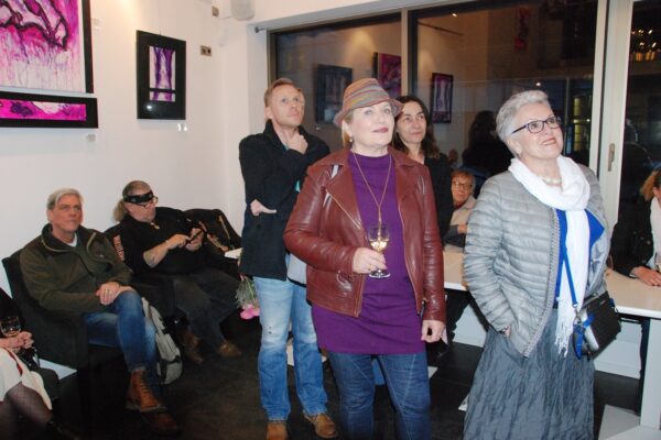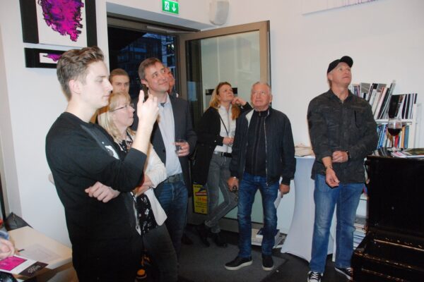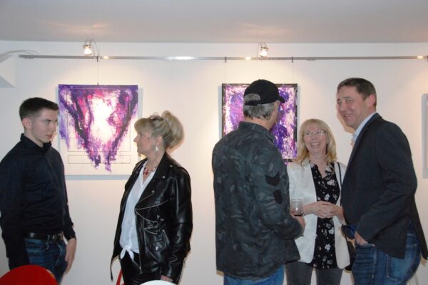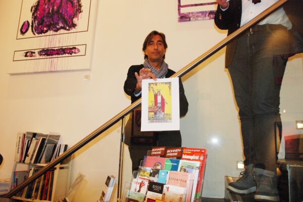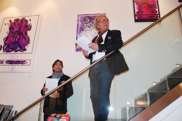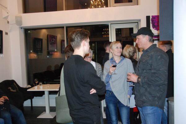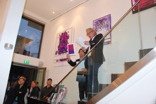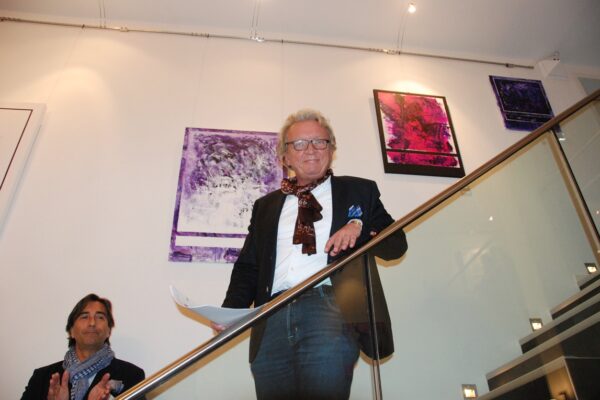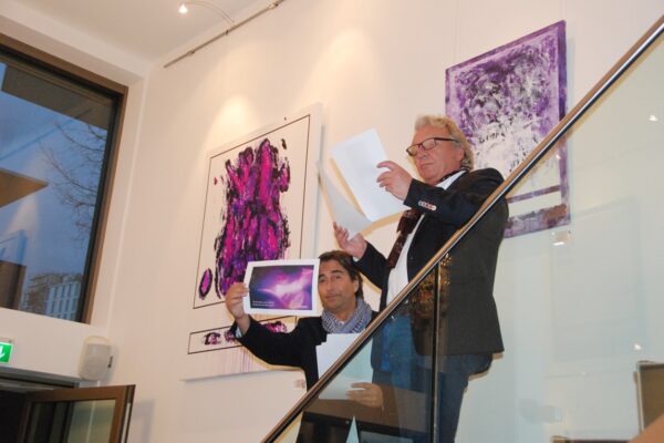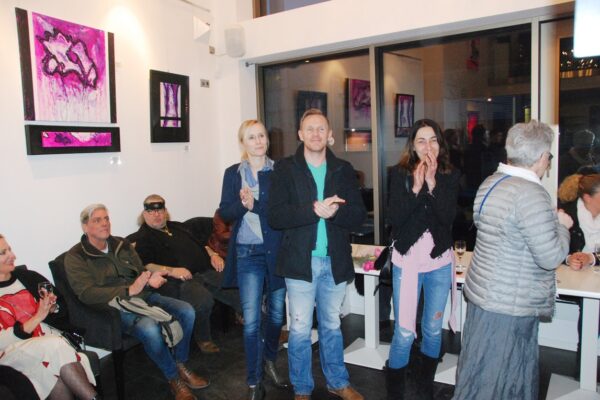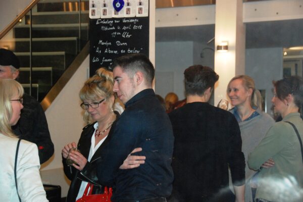 Dies mit dem einen Arm nach oben und einen Arm nach unten findet man auf allen ich sag mal „seriösen“ Tarotkarten, die den Magier darstellen. Es ist ein Verdienst dieser Orden, z.b. dem hermetischen Orden des „Golden Dawn“, die esotherischen Lehren bis in die Neuzeit gerettet zu haben. Machte ja auch Spass, so ein bischen Spökenkiekerei und Okkultismus, vorbei an Naturwissenschaften und den Religionen des Westens. Man verkaufte Urwissen, ewig Wahres und fühlte sich entsprechend elitär. In der Einleitung zu dem dreibändigen Werk „Das magische System des Golden Dawn“ heißt es : „Es gibt nur noch eine Handvoll von denen, die mehr als nur einen flüchtigen und gelegentlichen Blick auf Anderes vertragen, als auf die Oberflächlichkeiten, die ihnen das Leben bietet. Die meisten werden auch weiterhin jagen, angeln, mit Fahrzeugen aller Art hin und her reisen, Bier trinken, dick werden, fernsehen, Sportereignissen zuschauen und ihr Leben auf einer durchaus faden und weltlichen Grundlage dahinschleppen.“ So, jetzt sind wir soweit zu resümieren, dass die Bilder von Martin in Aufteilung und Farbgebung eine solide spirituell angehauchte Formensprache haben. Eine Farbgebung die auch noch hochaktuell ist. Wenn man einen Martyn Dunn an der Wand hat, kann man was erzählen. Mit was für Assoziationen sie nun die einzelnen Farbfelder ausfüllen, das meine Damen und Herren, bleibt Ihnen völlig überlassen. Sie haben die Deutungshoheit was „Above“ und was „Below“ für Sie sind. Wir leben im Zeitalter der Rezeptionsästhetik. Oder Sie hängen sich einfach das Bild zur Adventzeit hin, entsprechend dem lithurgischen Kalender. Der 1. Advent 2018 ist schon wieder in 8 Monaten, denken Sie ggf. jetzt auch schon an Weihnachtsgeschenke für Ihre Lieben. Ansprechpartnerin für den Verkauf der Werke ist in der Zeit der Ausstellung meine Frau Nissi, die Initiatorin und Namensgeberin der Kunstkantine. Sie kaufen sich etwas Besonderes. Besonders ist im Übrigen auch der Lebenswandel unseres Künstlers. Wir respektieren ja meistens bei Künstlern einen ungesunden, ausschweifenden Lebensstil. Der trägt zur Legendenbildung und Preissteigerung bei. Man denke beispielsweise an Francis Bacon, glücksspielsüchtig und nicht nur homosexuell, sondern auch masochistisch veranlagt, mit Narben im Gesicht, weil ihn sein Liebhaber im Zustand gehobener Lebensfreude einmal aus dem Fenster warf. Von Mark Rothko dachte man immer, dass er sich im Griff hat. Er hatte beamtenhafte Arbeitszeiten von 9 bis 17 Uhr und drückte seine Einkommenssteuerbelastung dadurch, dass er Bilder an Museen verschenkte und den potentiellen Veräußerungserlös als Betriebsausgabe absetzte. Das war in den USA bis Ende 1969 so möglich, seine 798 auf Vorrat gemalten Bilder wurden in eine steuerbegünstigte Stiftung eingebracht. Im Februar 1970 hat sich Rothko dann umgebracht im Bewußtsein, das der Nachlass fiskalisch perfekt geordnet ist. Danach brach dann selbstverständlich die Hölle los um den Nachlass. Wenn man sich überlegt, das alle Rothko-Bilder die auf Auktionen landeten seit 2010 im deutlich 2-stelligen Millionen Bereich verkauft wurden, kann man sich vorstellen, um was es ging eben, es ging um Milliarden. In Martyn Dunn haben wir einen neuen, ich möchte sagen: modernen Typus des Künstlers, der eher ins Fitnesstudio geht, als ins Kasino oder zum Psychiater. Martyn schreibt mir hierzu: „Fitness und Sport gehören eindeutig zur Grundlage meines positiven Wohlbefindens. Die alten Griechen erkannten bereits, dass ein gesunder Geist nur in einem gesunden Körper existieren kann.“Mens sana in corpore sano!“ Einfluss hat dieses innere Wohlbefinden direkt auf meine Bilder. Das möchte ich energetisch an den Betrachter weitervermitteln auf subjektive und nichtsubjektive Weise.“ Also, wenn das kein Kaufargument ist, meine Damen und Herren! Wer sich einen Dunn hinhängt, wird sich stets daran erinnern, pünktlich zum Spinning- oder zu Zumba-Kurs zu erscheinen. Ein Gemälde von Martyn gehört auch in jedes Home-Gym. Wer von uns ist nicht schon demotiviert zwischen zwei Sätzen auf der Hantelbank eingedöst. Das passiert nicht mehr, wenn da ein Dunn hängt. Jahrelang hatten sie sich im Spiegel angesehen und ermüdend darauf gewartet, das sich ihr Schnitzelfriedhof zu einem Sixpack ummodelt. Hängen Sie den Spiegel ab und einen Dunn auf. Dann geht es Ihnen besser. Möge das Werk mit seiner Strahlwirkung des Positiven auf die Körperformung einwirken. Auch das Nervenkostüm des Künstlers ist formstabil. Nichts trainiert das Nervenkostüm mehr als die Kunst dem Volk nahezubringen. Martyn Dunn war deswegen als Pflastermaler unterwegs. In dieser Eigenschaft hat er in 8-10 Arbeitsstunden große klassische Gemälde auf das Pflaster gebannt und kann ihnen was erzählen über Skateboardfahrer die Bremsspuren auf seiner Mona Lisa hinterließen oder Dudelsackspieler die in der Fußgängerzone unablässig ein 2-Lied Repertoire runterdudeln. Ich habe ja einen Tinnitus, der mich sowieso schon nervt und wenn ich mir vorstelle, dass der auch noch dudelsackmäßig schnarrend moduliert, dann kann ich gar nicht mehr was arbeiten. Also meine Damen und Herren : Martyn Dunn ist ein Künstler mit Modelfigur und nerven wie Drahtseilen. Das hatten wir hier noch nicht. Ich darf Ihnen jetzt noch viel Vergnügen bei der heutigen Vernissage wünschen und verabschiede mich mit dem Satz : „Die Kunst lebt von Käufern“ Bis bald ! Bernd Roloff