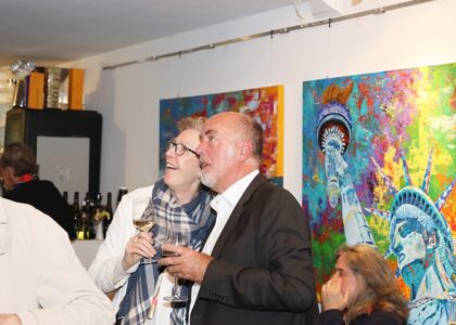 Laudatio Andreas Görzen, 13.09.2019 Liebe Freundinnen und Freunde der Kunstkantine, liebe Gäste, willkommen im Bernsteinzimmer der HafenCity! Mein Name ist Bernd Roloff, ich bin der Keynote-Speaker der Kunstkantine und darf Euch heute auf das Herzlichste begrüßen, zur 55. Vernissage von Nissis Kunstkantine seit ihrer Eröffnung im März 2013. Diese Ausstellung gilt den Werken von Andreas Görzen und steht unter dem Titel „Colours of my world“ Zu Deutsch „Die Farben meiner Welt“. Die wichtigste Farbe meiner Welt in den nächsten 15 Minuten ist „blond“. Begrüßen Sie mit mir zu meiner Rechten meine Assistentin Betty. Sie ist verantwortlich für das Hochhalten von Exponaten, die meinen hinreißenden und ausschweifenden Vortrag untermauern werden. In dieser Ausstellung finden sich 3 Gemälde mit Karl Lagerfeld als Motiv. Karl Lagerfeld war sicherlich jemand, den ich als wirklichen Prominenten bezeichnen würde. Prominent ist für mich jemand, dessen Tod auf der ersten Seite der Bildzeitung gemeldet wird. Und wirklich prominent war der Verflossene, wenn sich die Überschriften-Redaktion auch noch Mühe bei der Todesmeldung gegeben hat. Als Karl den Löffel abgegeben hatte, titelte die Bildzeitung: „Die Engel tragen jetzt Chanel“ Ich muss gestehen, dass ich ehrlich gerührt war. Der Spross einer Dosenmilchsippe hat es wirklich weit gebracht. Lagerfeld selbst wollte übrigens nicht in den Himmel, um die Engel einzukleiden. In einem Interview mit dem Playboy von 2011 hat er sich sehr eindeutig über sein Post-Mortem-Domizil geäußert: „Ich gehöre in die Hölle. Im Himmel ist es sicher langweilig.“ Legendär sind auch andere seiner Zitate: Zum Beispiel: „Telefone sind etwas fürs Personal.“ Wir sind doch heute alle mit unserem Smartphone verklammert. Der wahre Snob lässt sich eben alles von seinem Butler zuflüstern. Nächstes Beispiel: „Man muss das Geld zum Fenster rausschmeißen, damit es zur Tür wieder hereinkommt.“ Was soll das eigentlich bedeuten? Ich glaube es hat gar keinen Sinn, hört sich aber gut an. Betty meint, dieser Spruch bedeutet, dass man erst investieren muss, bevor Erträge entstehen. Der Sinn ist also der Gleiche wie bei dem Spruch „Man muss mit der Wurst nach dem Schinken werfen“, wie man in Bad Bramstedt sagt, wo Lagerfeld herkommt. Noch ein Zitat: „Eleganz ist ähnlich wie Mayonnaise. Sie schmeckt oder sie schmeckt nicht.“ Dieses Zitat lässt sich eigentlich auf alles anwenden, was sinnlich erfahrbar ist. Kunst ist ähnlich wie Mayonnaise, sie schmeckt oder sie schmeckt nicht. Über Geschmack lässt sich nicht streiten. Das berühmteste Zitat von Lagerfeld ist sicherlich der Spruch: „Wer eine Jogginghose trägt, hat die Kontrolle über sein Leben verloren.“ Niemand verkörperte den Kontrollverlust in dieser Hinsicht besser als die Figur „Cindy aus Marzahn“. Lieblingsspruch von Cindy im Übrigen: „Das Leben ist ein hartes Brot, aber es muss gegessen werden.“ Ja, meine Damen und Herren, warum hängen wir uns lieber Karl Lagerfeld als Cindy aus Marzahn an die Wand? An sich ist doch eine Jogginghose ganz bequem. In Jogginghose auf der Couch mit einer großen Tüte Erdnussflips bewaffnet, Whiskey-Cola im Glas, „Game of thrones“ in der hochauflösenden Glotze, das hört sich doch nach einem höchst angenehmen Abend an. Aber wollen wir mit Cindy aus Marzahn über der Couch den Endzustand einer solchen Lebensweise vor Augen haben, gewissermaßen als unser Celebrity-Twin? Besser, wir hängen König Karl auf, der sich von einem dreistelligen Körpergewicht wieder auf Jeansgröße 29 runterhungern konnte, um von Wallawalla-Outfits japanischer Designer in einen Superslim-Look mit Vatermörderhemden zu wechseln. Man braucht ja Vorbilder. Zum Sichgehenlassen braucht man keine, das kann man von selbst. Neben Karl Lagerfeld haben wir auch noch Porträts von Muhammad Ali und Michael Jackson in der Ausstellung. Was haben diese Motive gemeinsam? Alle 3 waren hochfokussiert und zusätzlich in ihrem Metier Genies. Ihre Karrieren begannen schon in früher Jugend. Bei Michael Jackson ist das bekannt. Karl Lagerfeld gewann mit 20 einen weltweiten Wettbewerb für die Kreation eines Mantels. Muhammad Ali begann mit 12 Jahren das Boxtraining, weil er den Dieb seines Fahrrades verprügeln wollte. Er wurde mit 22 Profi-Weltmeister und verteidigte den Titel sogar im Rückkampf. Tja, meine Damen und Herren, am Start erkennt man den Sieger. Aus allen 3 Porträtierten wurden schließlich Legenden. Der Begriff Legende war ursprünglich religiös besetzt. Bei Wikipedia habe ich folgenden Satz gefunden: „In der Form der Heiligenlegende zielt die Legende nicht auf die vordergründige historische Wahrheit, sondern auf die Verkündigung einer Glaubenswahrheit.“ Glaubenswahrheit und nicht historische Wahrheit. Was immer es auch an Auf und Abs und Skandalen in den Biografien der Porträtierten gegeben haben mag, wird verdrängt durch Heroisierung. Das ist jetzt nicht im negativen Sinne gemeint. Über die Frage, warum er Karl Lagerfeld mehrfach gemalt hat, schreibt mir Andreas: „Weil Lagerfeld eine große Modeikone war und immer noch ist. Er hat viele Menschen inspiriert und solche Persönlichkeiten male ich gerne, da sie der Welt etwas mit ihrer Kunst schenken.“ Aber es gibt ja hier nicht nur Porträts zu sehen. In unserer Einladung haben wir über den Gesamtkontext der Ausstellung das Folgende geschrieben: „Andreas setzt bei seinen Porträts, Stadtansichten und Stillleben auf knallige Acrylfarben und ertüchtigt das Seherlebnis seiner Werke mit Applikationen wie zum Beispiel Swarovski-Steinen. Gezeigt wird eine prismatische Auswahl ausdrucksstarker Gemälde, die sich zwischen den Begriffen Expressionismus, PopArt und Materialbild verorten.“ Andreas verortet seine Kunst nicht zwischen Expressionismus, PopArt und Materialbild. Er nennt sie „Abstract Realism“, also Abstrakten Realismus. Für mich waren das Gegenbegriffe, was abstrakt ist, 