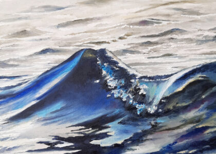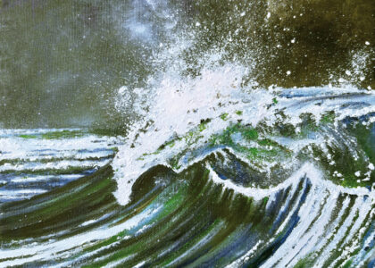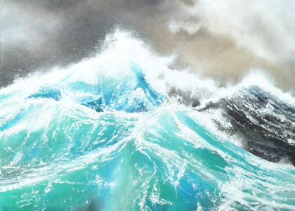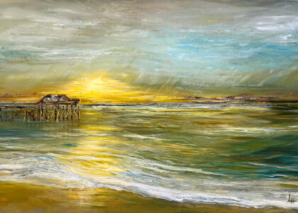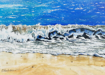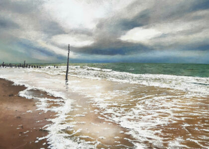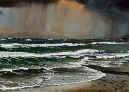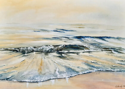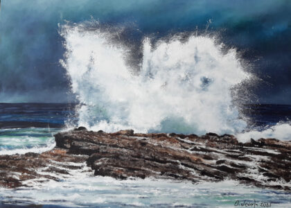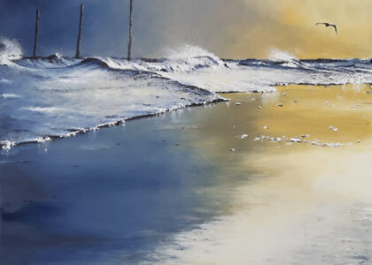 Die Motive basieren auf Inspirationen durch lange Strandspaziergänge. Durch seine genaue Beobachtungsgabe verleiht er seinen Bildern ganz besonders eingefangene Momente des immer in Bewegung befindlichen Wassers mit seinen Wellenformationen.