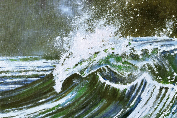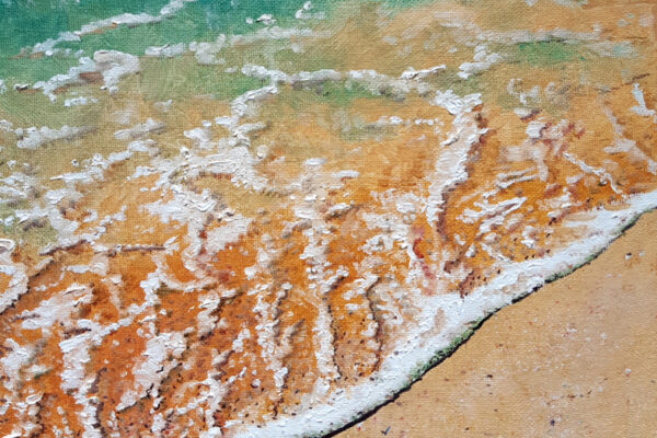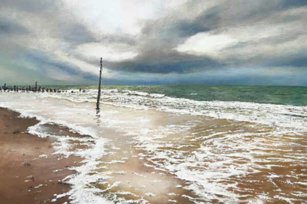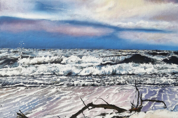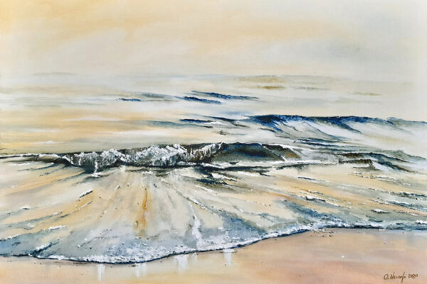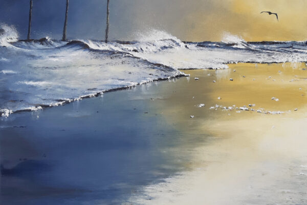 Die Motive basieren auf Inspirationen durch lange Strandspaziergänge. Durch seine genaue Beobachtungsgabe verleiht er seinen Bildern ganz besonders eingefangene Momente des immer in Bewegung befindlichen Wassers mit seinen Wellenformationen.