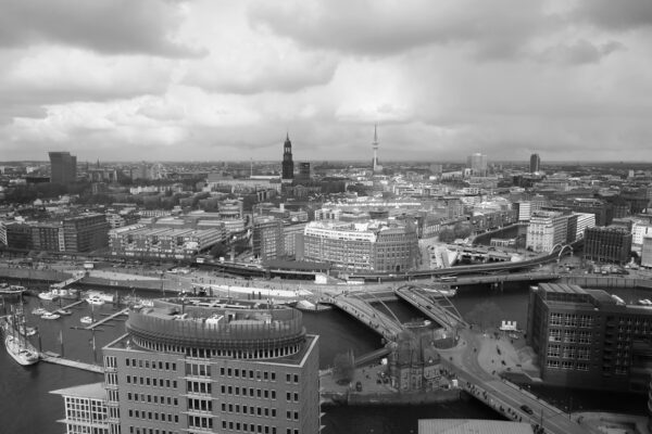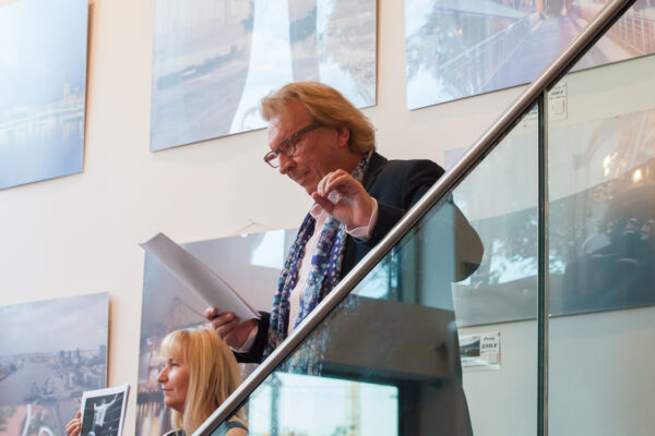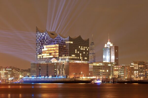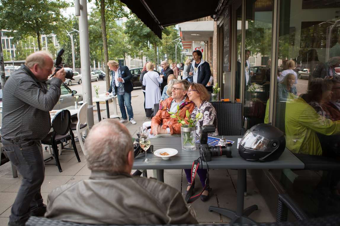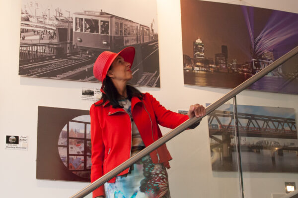 Da muss man draufhalten und im richtigen Moment mit der richtigen technischen Einstellung das Motiv ablichten. Der Moment kommt nicht wieder. Für mich ein tolles Foto, das die Tragik einer Niederlage wiedergibt. Der Boxer nicht ganz austrainiert, platt am Boden. Der Ringrichter (danke dir, Kalle!) vollschlank und mit verknittertem Hemd. Alles nicht so gut gelaufen. Lassen wir mal Akt und Sport beiseite und widmen uns dem Hauptthema der Ausstellung. Der Titel der Ausstellung lautet: „Hamburg durch meine Linse“ In unserer Einladung haben wir formuliert: „Diese Ausstellung darf sich niemand entgehen lassen, der den Perlenglanz von Hamburg liebt.“ „Perlenglanz von Hamburg“, meine Damen und Herren, hier lief euer Keynote-Speaker zur absoluten Höchstform auf. Hamburg, meine Perle! Das Stadionlied vom HSV, komponiert und getextet von Lotto King Karl. Auch nicht die Perle an sich, eigentlich eine belanglose Kugel, sondern ihr Glanz, der Perlenglanz von Hamburg. Wie stellt man den sich vor? Nicht zu glänzend, das wäre Düsseldorf oder München, aber auch nicht zu duff, das wäre Schalke 04 im Kohlenpott. Wir brauchen was mit radianter Ausstrahlung, aber nicht zu flashy – wenn Sie wissen, was ich meine. Wie wäre es mit dem Foto „Eröffnung Elbphilharmonie“?
