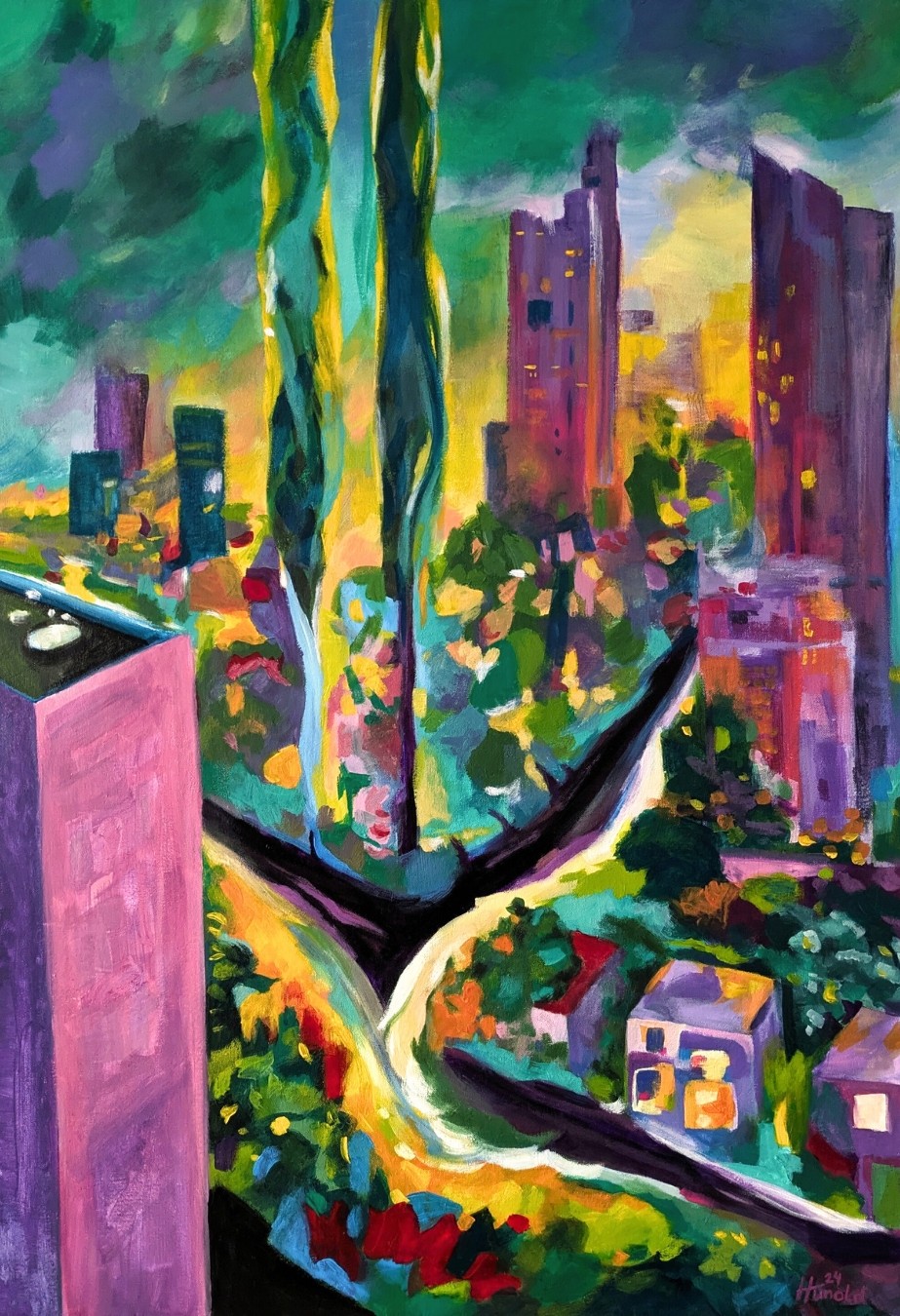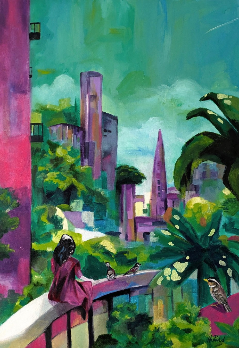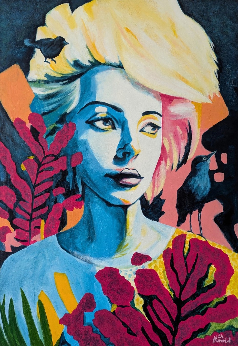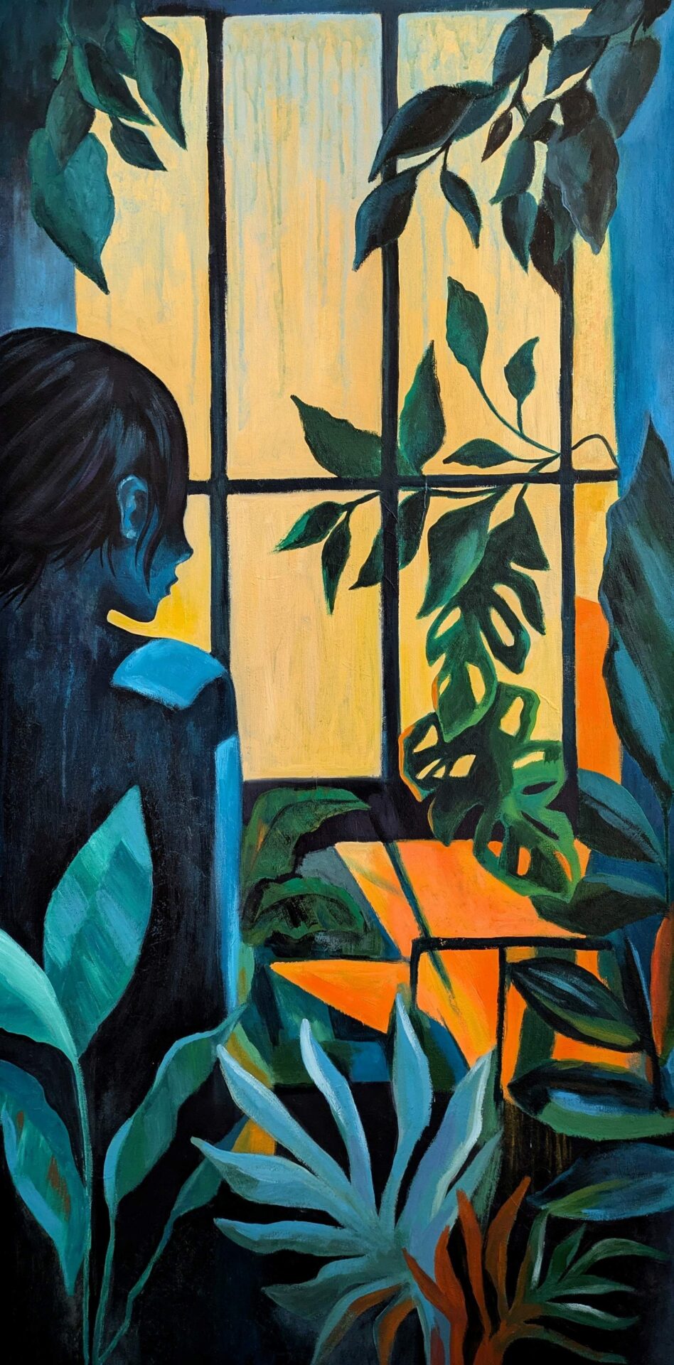 Ihr Studium zur Kommunikationsdesignerin an der HTK Hamburg legte dafür ein wesentliches Fundament: Durch die intensive Auseinandersetzung mit Illustration, Farbenlehre und Komposition entwickelte sie ein tiefes Verständnis für Bildaufbau und visuelle Wirkung. Darauf aufbauend fand sie ihre eigene künstlerische Handschrift, in der Figuren, Pflanzen und Räume zu Geschichten voller Energie und Ausdrucksstärke verschmelzen.