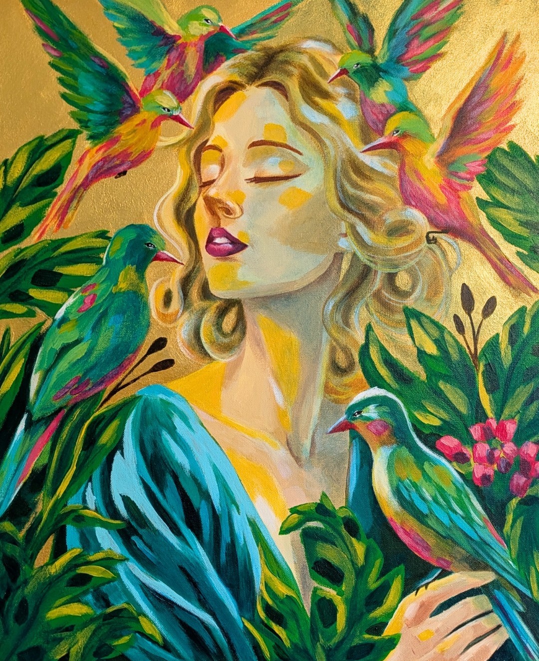 Jessica Hunold verbindet in ihrer Malerei Mensch und Natur zu farbenfrohen, expressiven & figurativen Kompositionen. Ihre Arbeiten öffnen Räume voller Harmonie und Leichtigkeit, in denen die Natur als Quelle von Inspiration und Lebenskraft erlebbar wird.