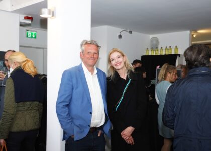 Eines der Lieblingsgemälde von Maribel ist übrigens „Strandspaziergang“ von Joaquin Sorolla aus dem Jahr 1909. Während die beiden Damen in hochgeschlossenen Kleidern ein züchtiges Defilée am Strand abschreiten, gibt es bei Maribel wenigstens etwas Haut und Aktion zu sehen. Habe ich vorhin gesagt, dass Badekappen etwas Nostalgisches haben? Ich habe von Maribels Antworten auf unserem Künstlerfragebogen ein Wort gelernt. Es heißt: Wichtigkeitsverlängerung. Insofern ist die Badekappendarstellung wohl eher eine Wichtigkeitsverlängerung als Nostalgie. Wie Sie wissen, ist eine Vernissage nicht zuletzt auch eine Verkaufsveranstaltung. Wir stellen uns mal vor, dass man bei 6,5° Außentemperatur, verhangenem Himmel und Nieselregen aus dem Schlafzimmer ins Wohnzimmer schlurft, so gegen 6:55 Uhr, also so wie meistens in den letzten 5, 6 Monaten und wir erblicken an der Wand ein Motiv aus der Sommerserie von Maribel. Zynischer Stimmung ist man nämlich erst ab einer gewissen Reifung des Tages. Also werden diese Werke früh am Morgen erfrischend motivierend abstrahlen. Eine Hoffnung auf einen schönen Sommer mit Schwimmring und Wasserball. Eben habe ich von Reifung gesprochen. In unserem „Fragebogen an den Künstler“ gibt es die Frage, was der Künstler bei der Werkschaffung am Schönsten findet, das fertige Bild oder den Flow beim Malen. Maribel gibt eine ganz neue Antwort: „Weder noch. Die Bilder brauchen eine Zeit zum Reifen. Manchmal sind die in einem Guss fertig, andere brauchen eine längere Zeit. Ich hänge die Bilder bei mir im Atelier auf und beobachte sie. Manchmal werden sie 1, 2, 3 Mal überarbeitet. Erst, wenn sie das richtige Bouquet entfalten können, werden sie signiert und reif für eine Ausstellung.“ Gerd gibt dagegen eine bodenständige Antwort auf die Frage, was für ihn wichtig ist: „Eher zielorientiert. Die Fertigstellung eines Bildes erfüllt mich Befriedigung“. Bildtitel finden beide Künstler wichtig, wobei Maribel nach meinem Eindruck eher Titel verwendet, die ihre momentane Stimmungslage ausdrücken, während Gerd eher auf die Stimmungslage oder die Message reflektiert, die das Werk ausdrückt. In diesen Kontext passt das Werk „Nähe“ von Gerd: