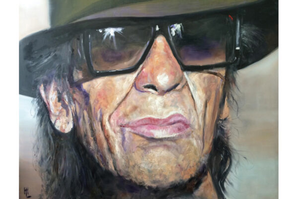 Ich hatte das Privileg, noch im Juni 1980 ein Live-Konzert mit ihm in Hamburg zu erleben, verstorben ist er dann ein Jahr später. Schon zum Zeitpunkt des Konzerts muss sein Körper von Krebsgeschwüren durchzogen gewesen sein, aber er brachte auf der Bühne die volle Leistung. Das Konzert fand in der Ernst-Merck-Halle statt. Hamburg hatte zum damaligen Zeitpunkt keine große Konzerthalle, in der Topstars auftreten konnten. Die Ernst-Merck-Halle war eher eine Behelfslösung. Sie war eine Messehalle. Ich erinnere mich genau daran, dass es bei dem Konzert höllisch heiß war und die Luft geradezu vernebelt war vom Rauch der Joints, die brannten. Überall wurde irgendetwas eingeworfen oder geraucht. Die Toiletten der Ernst-Merck-Halle waren völlig vollgekotzt. Manche hatten es gar nicht erst bis zum Toilettenbecken geschafft, sondern sich schon am Eingang erbrochen. Drübersteigen war also angesagt. Ich hab noch heute den Geruch der Mixtur aus Haschisch, Schweiß von 6000 Menschen und dem Odeur von Erbrochenem in der Nase. Mit 16 findet man das alles spannend. Ich wohnte selbstverständlich damals noch bei Mutti in Quickborn. Quickborn hat nach meiner Auffassung nur ein einziges Mal literarischen Ruhm erlangt, und zwar in der Einleitung des Buches von Wolfgang Herrndorf mit dem Titel „In Plüschgewittern“. Herrndorf schreibt dort: „Ich weiß noch genau, was ich dachte, in diesem Moment, auf dem Mofa, irgendwo bei Quickborn, ich dachte nämlich: Jetzt wird alles wieder gut.“ Quickborn hatte eine durch und durch bürgerliche Fassade. Aber wir 16-jährigen, die in einer Bungalow-Siedlung nach amerikanischem Vorbild domizilierten, bildeten eine Subkultur in der Wohlstandsverwahrlosung. Mein Freund Ulf hatte doch tatsächlich im Gewächshaus seiner Mutter eine Cannabisplantage hochgezogen. Seine Mutter ging nicht mehr viel vor die Tür, weil sie den ganzen Tag Four Roses trank. Also hatte Ulf, nebenbei Hobbybiologe, erfolgreich gegärtnert. Ich erledigte den Vertrieb im Haustürgeschäft. Das Lager war in meinen Lautsprecherboxen, bei denen ich in die Bassreflexöffnungen reingreifen konnte. Mofas hatten wir natürlich auch. Und zwar waren die alle frisiert. Trotzdem waren wir nun mit der AKN nach Hamburg gefahren, um unseren Rastafarihelden, der auch immer einen Joint in der Hand hatte, wenn er nicht gerade Gitarre spielte. Was für ein Abend kündigte sich an. Marley kam mit erheblicher Verspätung, als die Sonne schon untergegangen war, also gegen 10, auf die Bühne. Man hatte also 2 Stunden Zeit, erwartungsvoll dem Auftritt entgegen zu fiebern und tüchtig Gras zu rauchen. In der Halle stellte sich auch gar keine Ungeduld ein, das Konzert würde anfangen, wenn der Meister soweit war. Und dann war es soweit. Die Bühne war stockdunkel und Marley fing a capella an, „Natural mystic“ zu singen. “There’s a natural mystic Blowing through the air If you listen carefully, now you will hear Many more will have to suffer Many more will have to die Don’t ask me why Things are not the way they used to be I won’t tell no lie” Retrospektiv lässt dieser melancholische Text wohl schon anklingen, dass er wusste, dass er es nicht mehr lange machen würde. Als dann die Bühnenlichter angingen, war ihm davon nichts anzumerken. Da stand er, unser Held, charismatisch, wie er war, und schüttelte seine überlangen Dreadlocks zu seinen Reggaehits. 75 Mio. Tonträger hat Bob Marley verkauft. Zeitweise überstieg sein Plattenumsatz das restliche Bruttosozialprodukt von Jamaika. Sein Nachlass wird auf 600 Mio. Dollar geschätzt. Das ist doch schon mal eine Hausnummer. Neben romantisierenden Kindheitserinnerungen wollen wir doch das Streben nach dem Mammon nicht vergessen. Durchaus kann man sich also das Bild auch ins Büro hängen. Ggf. auch ins Schlafzimmer. Bob Marley wird die Vaterschaft von insgesamt mindestens 22 Kindern zugeschrieben. Das spricht für Aktivität und Spermadichte. Insgesamt gibt es also genügend Motive, sich der guten Gesellschaft von Bob Marley zu versichern, in dem man sein Porträt kauft und an geeigneter Stelle aufhängt. Vorgreiflich stellt sich aber eigentlich die Frage, weshalb man als Künstler Porträts malt. Holger sieht Porträts als Herausforderung an, den Charakter der abgebildeten Personen so gut wie möglich treffen zu können. Interessanter Weise arbeitet er ergebnisorientiert. Viele Künstler lieben eher den Flow bei der Werkschaffung, das heißt, der Genuss liegt im Malen selbst. Das Ergebnis ist dann irgendwann einfach da. Bei Holger ist das anders. Er schreibt mir, dass seine Erleichterung groß ist, wenn er das Gefühl hat, das Bild nach seinen Vorstellungen fertiggestellt zu haben. „Endlich fertig!“ kommt also für ihn besser, als das Flow-Malergefühl „Oh, schade – schon vorbei!“. Als nächstes stellt sich die Frage, wen man porträtiert. Unsere Ausstellung hat den Titel „Macher, Musen und andere Menschen“. Wie die Motivauswahl hier zeigt, sind einige Macher porträtiert worden, also Protagonisten, die in authentischer Weise „ihr Ding“ machen, bzw. gemacht haben. Gehen wir mal einen Schritt weiter. Ich habe Holger folgende Frage gestellt: „Erfordert ein gutes Portrait, das der Maler das Motiv sympathisch findet oder könntest du auch Adolf Hitler oder Osama Bin Laden malen ohne zu leiden? Würdest du ein Portraitauftrag von Björn Höcke annehmen?“ Holger antwortete mir das Folgende: „Für mich ist es wichtig, dass mir die Person etwas im positiven Sinne gibt, dass sie etwas in mir positiv bewegt. Dann arbeite ich mich gern in die Persönlichkeit hinein und male sie auch gern. Sicher spielen da auch Erinnerungen an die eigene Kindheit und Jugend eine wichtige Rolle. Mit bestimmten Persönlichkeiten bzw. Ikonen ist man ja aufgewachsen, das prägt schon.“ Hier, meine Lieben, decken sich erstaunlicherweise die Motive für die Werkschaffung und für den Erwerber eines Porträts. Bob Marley ist eine Ikone meiner Jugend und erinn