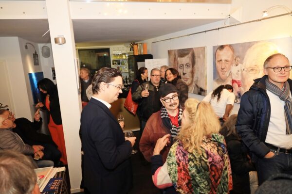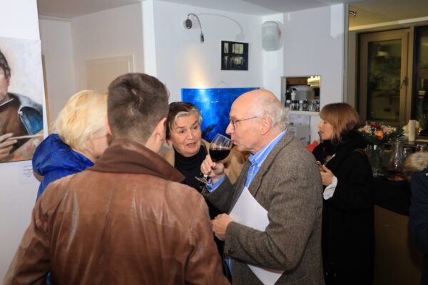 Muhammad Ali begann mit 12 Jahren das Boxtraining, weil er den Dieb seines Fahrrades verprügeln wollte. Er wurde mit 22 Profi-Weltmeister und verteidigte den Titel sogar im Rückkampf. Tja, meine Damen und Herren, am Start erkennt man den Sieger, das versteht man unter Hochbegabung. Irgendwann erkennt man, dass man es weit bringen könnte, wenn man fokussiert und zielstrebig bleibt. Ali hatte auch noch die Nonchalance, dies Alle wissen zu lassen: „Es ist schwer, bescheiden zu sein, wenn man so großartig ist, wie ich es bin.“ Also, meine Damen und Herren, seien auch Sie heute Abend nicht zu bescheiden und gönnen Sie sich ein Werk von Holger Liedtke. Eine großartige Laudatio haben Sie schon gehört, nun geht es ans Monetarisieren meiner Ausführungen. In jedem Fall bedanke ich mich bei Betty für das taktisch zeitgerechte Hochhalten von Exponaten und bei Ihnen, liebe Gäste für Ihre Aufmerksamkeit. Bleiben Sie der Kunstkantine treu und bis bald. Bernd Roloff