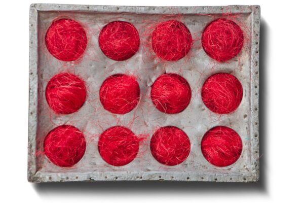 Die jetzt in Nissis Kunstkantine gezeigten Arbeiten zeugen auch von der unbeschreiblichen Plastikflut in unseren Weltmeeren. Eingesammelt hat er die bunten Plastikteilchen auf den Kanaren-Inseln Lanzarote und Gomera, an der andalusischen Mittelmeer-Küste, aber auch auf Finkenwerder, Steinwerder oder der dänischen Nordseeinsel Fanoe.