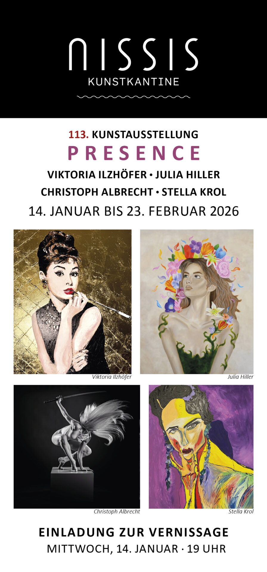 Einladung zur Vernissage am Mittwoch, den 14. Januar 2026 um 19 Uhr.