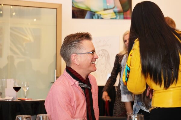 Ich finde die Antilopen weniger monetisch als eher dem Malstil von William Turner zuordnungsfähig. William Turner spuckte ja ganz gern mal auf die Leinwand. Aber sie hat in ihrer Maltechnik, wie sie mir schreibt, kein besonderes exzentrisches Geheimnis. Außer große Pinsel und Palettmesser zum pastosen Auftragen der Ölfarbe. Meine Damen und Herren, eine Vernissage ist nicht zuletzt eine Verkaufsveranstaltung. Folgen Sie also spontan auftretenden Kaufimpulsen. Egal, woher sie stammen. Ob sie in der „Ollen Glucke“ ihr Erbtante wiedererkennen oder bei ihrem Anblick Appetit auf Hühnerfrikassee bekommen oder sie der katalanische Riesenesel heiß macht, greifen Sie zu. Das Leben ist keine Generalprobe und der Sarg hat kein Regal. Machen Sie sich oder Anderen eine Freude. Mit einem Werk von Stefanie Klymant machen Sie mit Sicherheit keinen Fehler. Jeder Künstler fühlt sich geschätzt, wenn seine Werke gekauft werden. Stefanie ist aber auch altruistisch motiviert und unterstützt Tierschutzorganisationen bis hin ins ferne Borneo. Wer so malen können will, wie Stefanie, kann bei ihr einen Malkurs buchen. Ich weiß nicht, wie es euch geht, meine Lieben, ich habe eigentlich noch nie Gemälde gesehen, die den Gemütszustand oder die Stimmung eines Tieres so gut transportieren. Stolze, selbstbewusste Hühner, hedonistische Schweine, kapriziöse Pfauen, brave Schafe und iberische Esel in einer leidenschaftlichen Vierecksbeziehung. Stefanie erschafft Tiergemälde in seltener Schönheit. Greifen Sie also zu bei den seltenen Schönheiten, die Ihnen hier gezeigt werden. Mit diesem Appell möchte ich enden. Vielen Dank fürs Zuhören und bis bald. Bernd Roloff