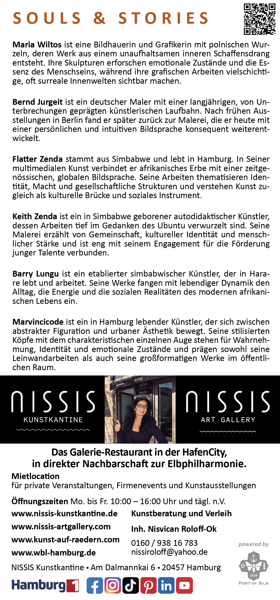 Flatter Zenda ist ein in Simbabwe geborener und in Hamburg ansässiger MultimediaKünstler, dessen Werke afrikanisches Erbe mit einer zeitgenössischen, globalen Bildsprache vereinen. Seine Arbeiten zeichnen sich durch eine kraftvolle visuelle Tiefe, symbolische Ebenen und eine markante MixedMedia-Technik aus, die Themen wie Identität, kulturelle Erinnerung und Resilienz eindrucksvoll inszenieren.
