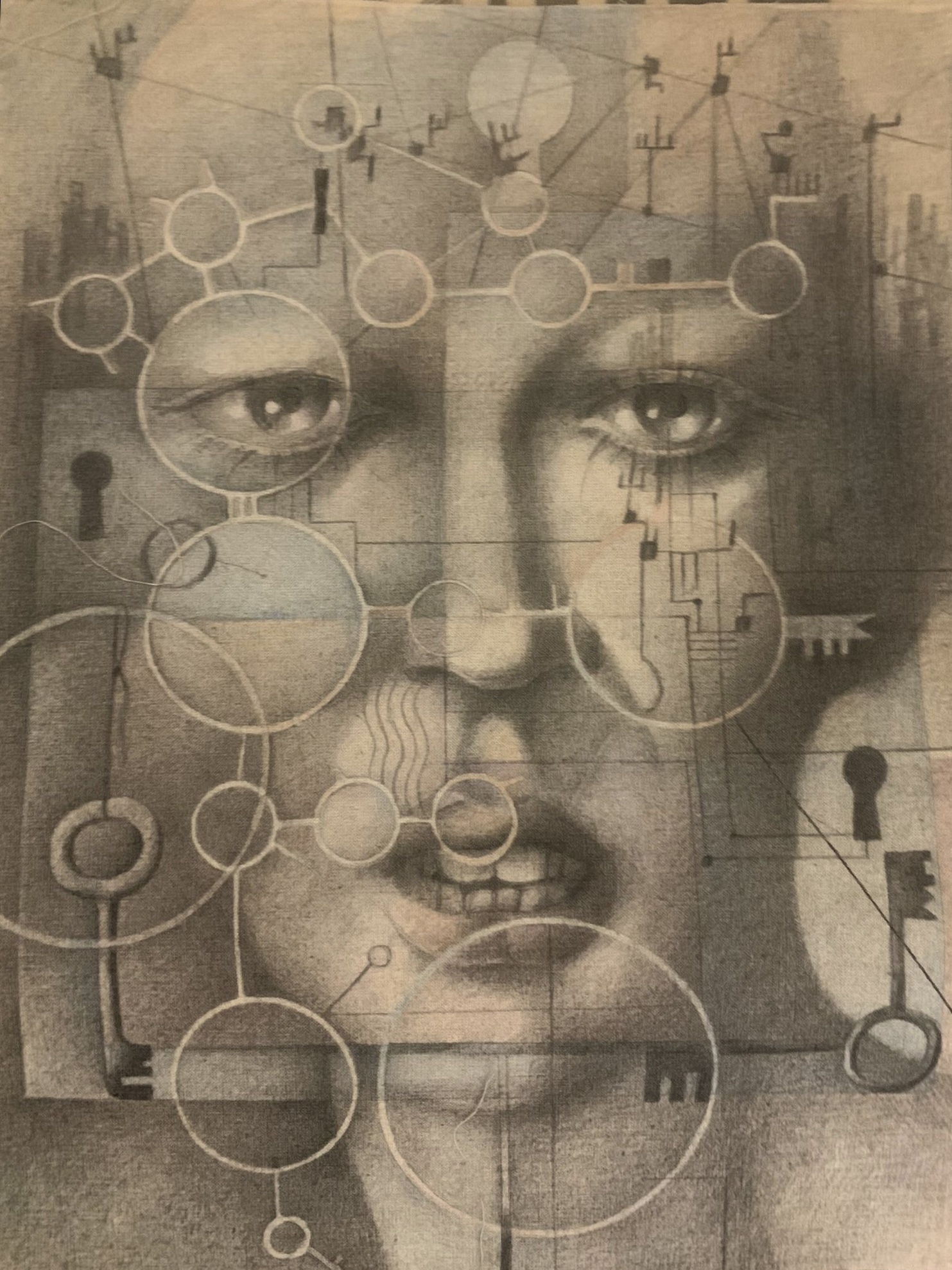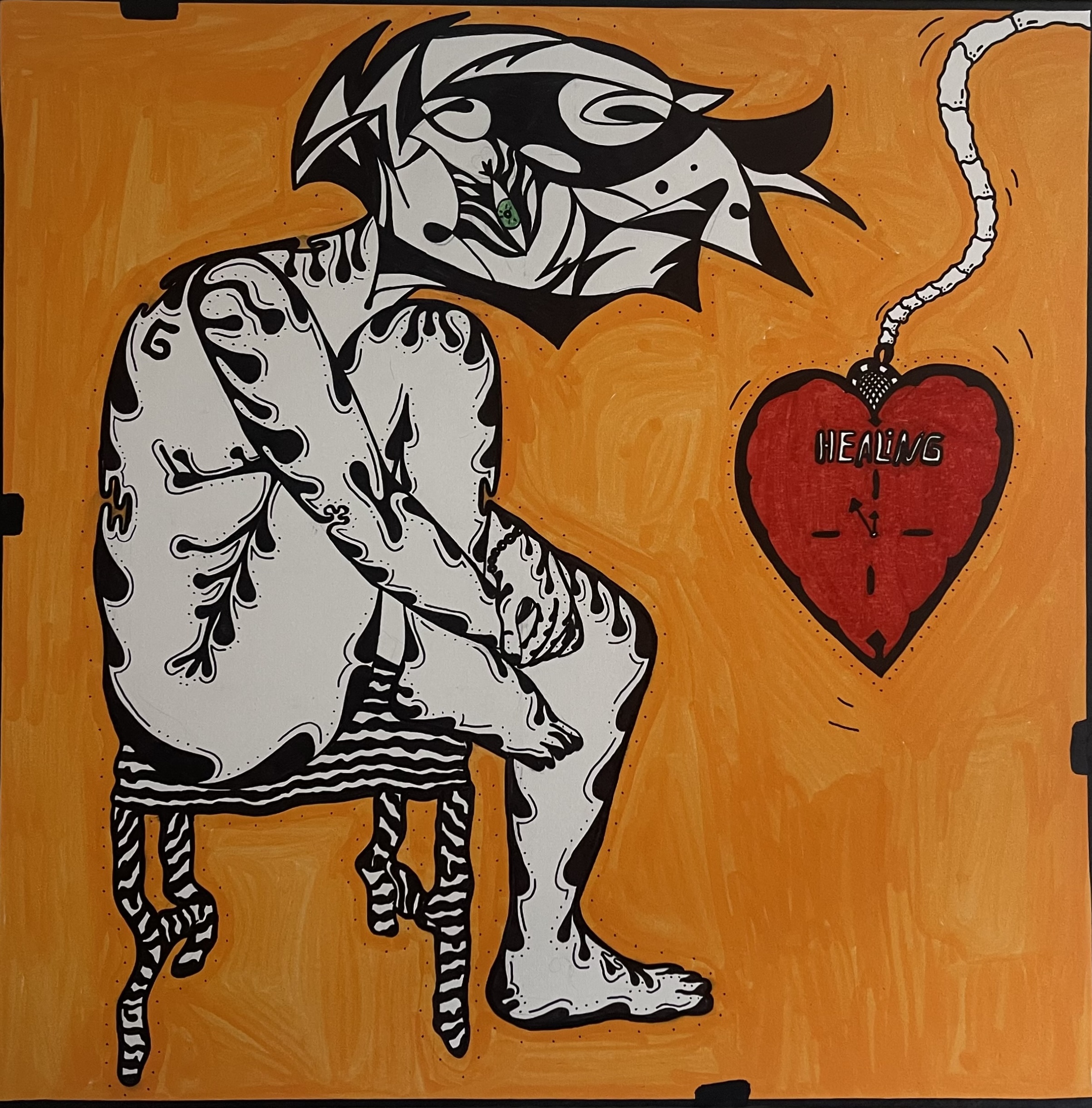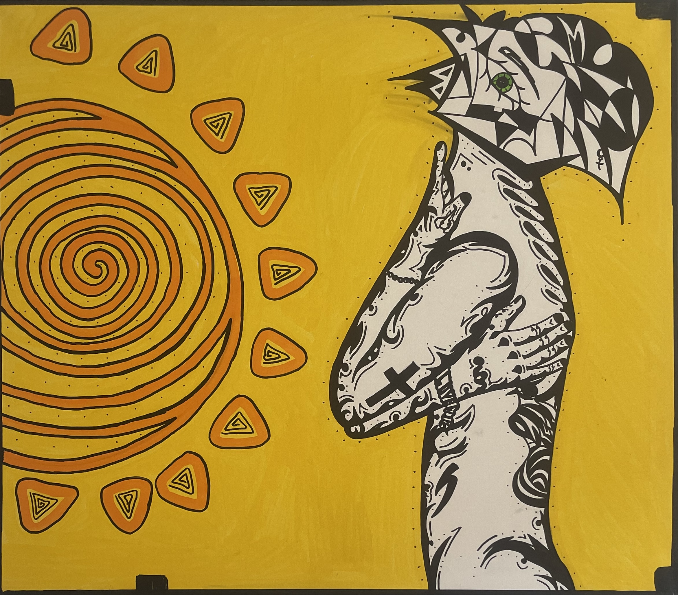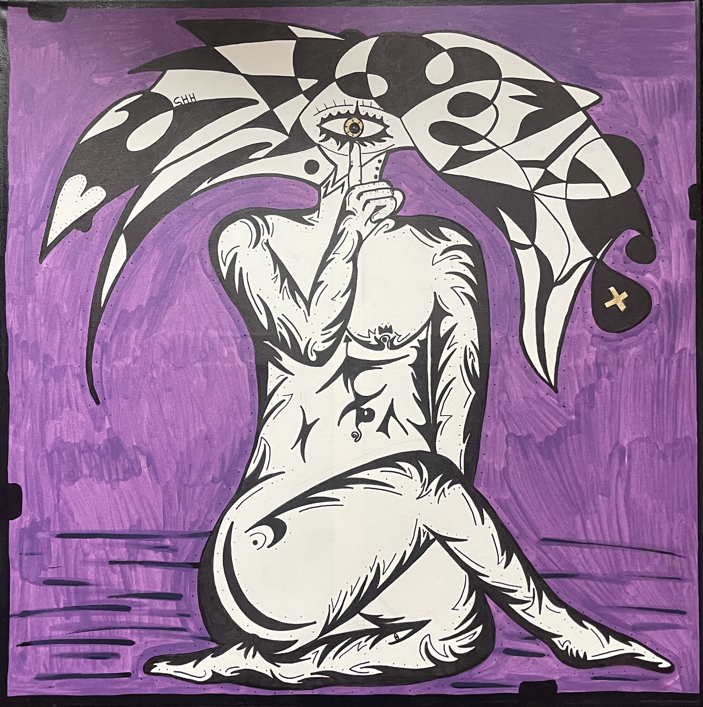 Marvincicode ist ein in Hamburg lebender Künstler, dessen Arbeiten sich zwischen abstrakter Figuration, urbaner Ästhetik und zeitgenössischer Malerei bewegen. Seine Bildsprache ist geprägt von stilisierten Köpfen mit einem einzelnen Auge – ein wiederkehrendes Motiv, das Wahrnehmung, Identität und emotionale Zustände symbolisiert. In seinen Werken treffen Schwarz-WeißKompositionen auf gezielte Farbexplosionen, Kontrolle auf Spontanität und persönliche Erfahrungen auf queere Themen.
