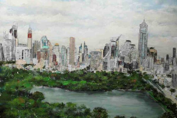 Für ihr weltweites Projekt Suite View malte sie in den Metropolen den Blick aus Hotelsuiten.