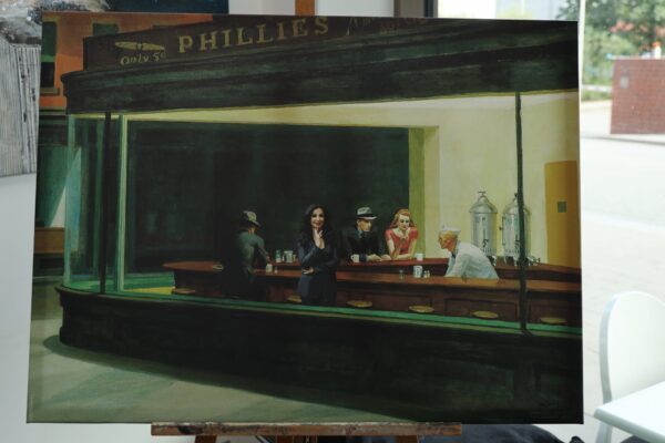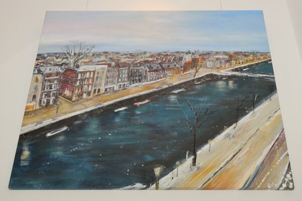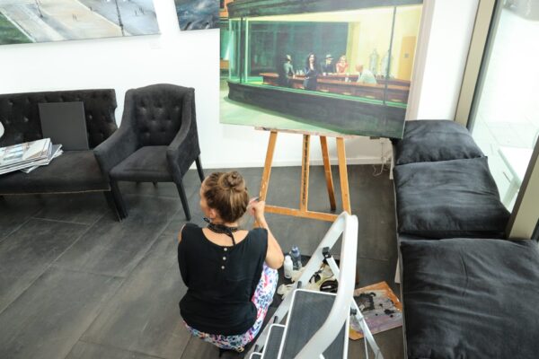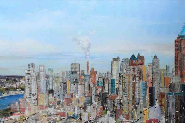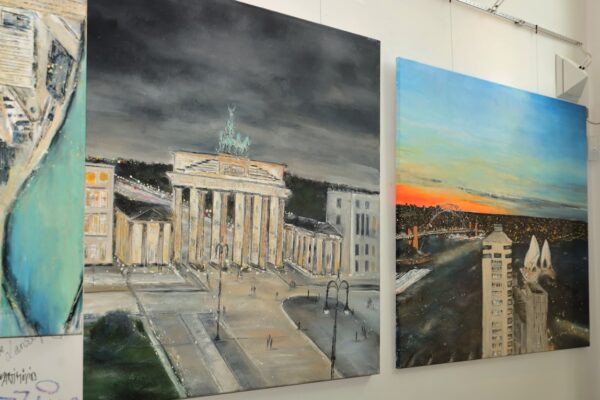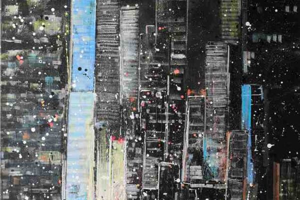 Schon vor vielen Jahren stieg Jeannine Platz auf die größten Containerschiffe der Welt, auf Windräder und hohe Türme und Brücken, um das endlose Pulsieren im Hafen auf die Leinwand zu bringen. Zahlreiche Hafenmotive hat sie bereits gemalt. Der Hamburger Hafen ist und bleibt eine unerschöpfliche Inspirationsquelle für die Künstlerin.