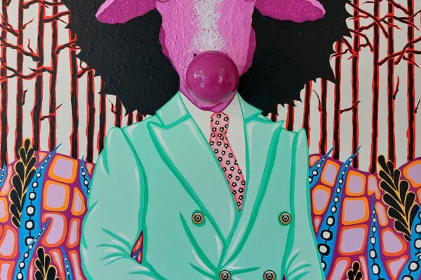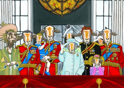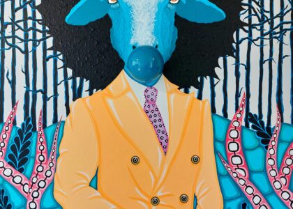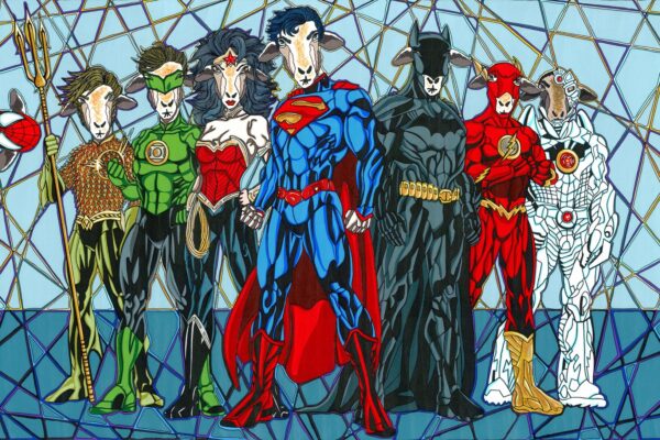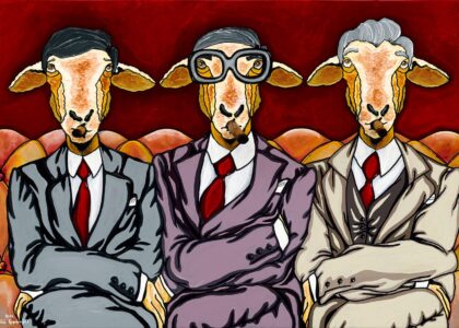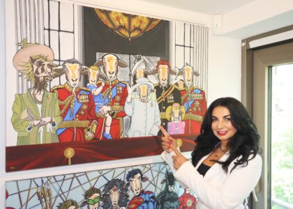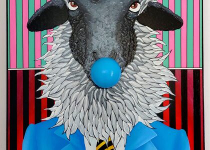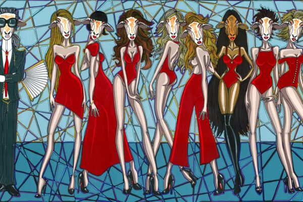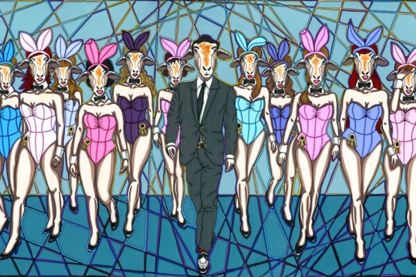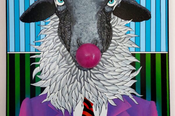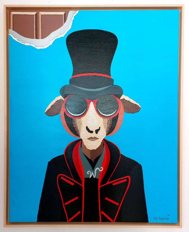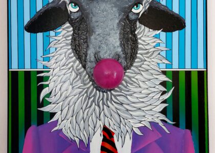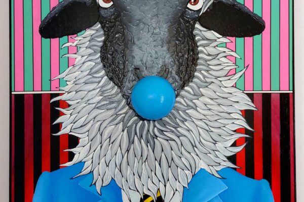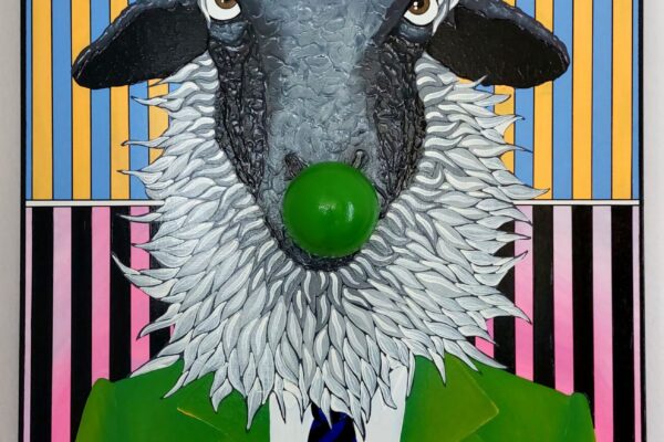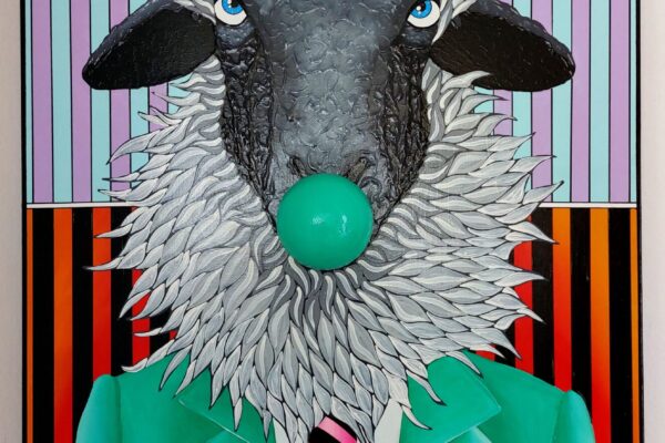 Der in Düsseldorf lebende Künstler ist international bekannt für seine provokativen und satirischen Darstellungen von Schafen. Karamanlis‘ Schaf-Serie ist nicht nur eine Hommage an das schlichte, oft übersehene Tier, sondern dient als Medium, um tiefere menschliche Verhaltensmuster zu erforschen. Inspiriert durch ein Zitat von Albert Einstein – „Um ein tadelloses Mitglied einer Schafherde sein zu können, muss man vor allem ein Schaf sein“ – begann er, bekannte Persönlichkeiten wie die Queen, Karl Lagerfeld, und James Bond in Schafgestalt darzustellen.