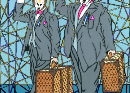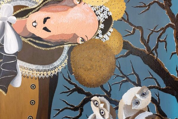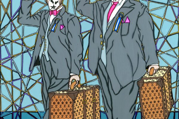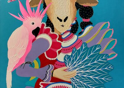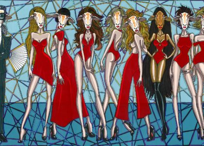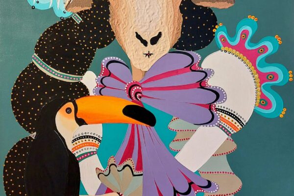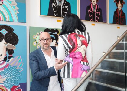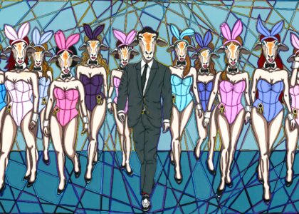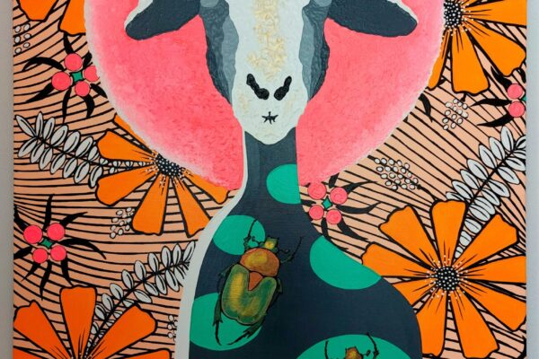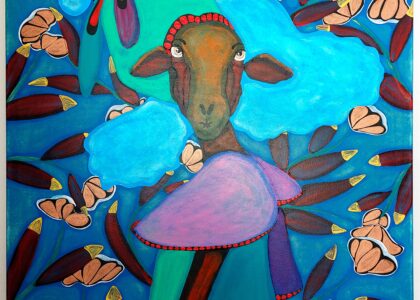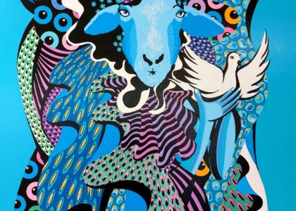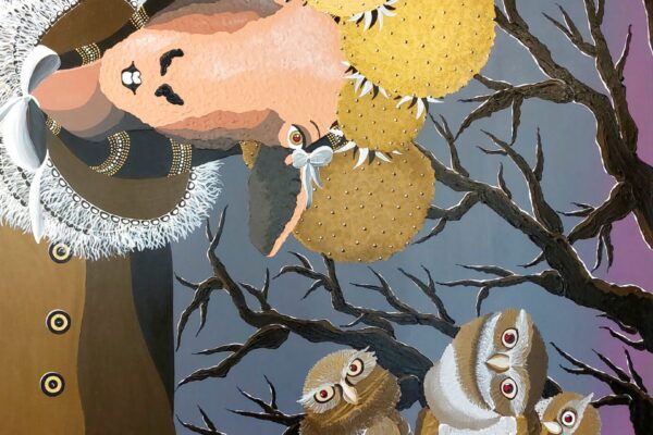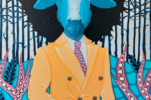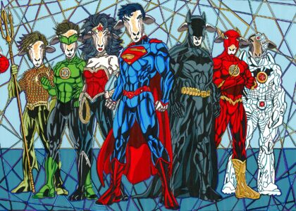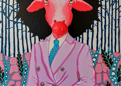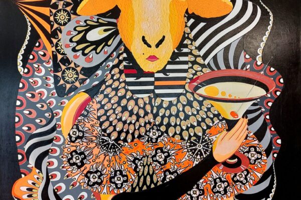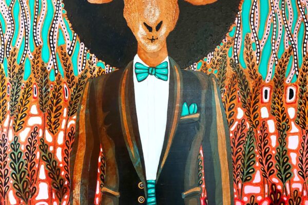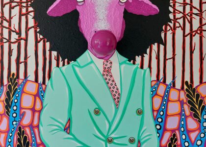 Der in Düsseldorf lebende Künstler ist international bekannt für seine provokativen und satirischen Darstellungen von Schafen. Karamanlis‘ Schaf-Serie ist nicht nur eine Hommage an das schlichte, oft übersehene Tier, sondern dient als Medium, um tiefere menschliche Verhaltensmuster zu erforschen. Inspiriert durch ein Zitat von Albert Einstein – „Um ein tadelloses Mitglied einer Schafherde sein zu können, muss man vor allem ein Schaf sein“ – begann er, bekannte Persönlichkeiten wie die Queen, Karl Lagerfeld, und James Bond in Schafgestalt darzustellen.