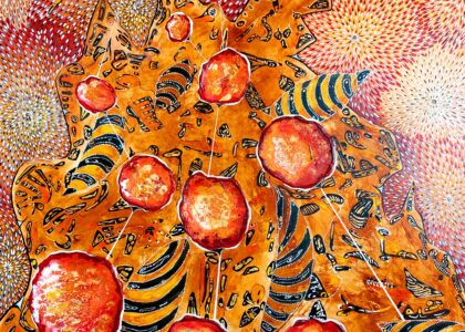 Adam Karamanlis, 2023, Acryl und Beize auf Holz, 70x70 cm