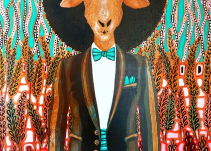 Der geschätzte Vernissagen-Gast hat eigentlich erst dann seinen Zweck erfüllt, wenn er mit etwas Gekauftem zu Hause erscheint. Kulturell vorgebildet weiß er über Künstler mit dramatischem Leben und Tod Bescheid. In diesem Zusammenhang wollen wir uns einem Schaf mit kräftigen Augenbrauen widmen:
