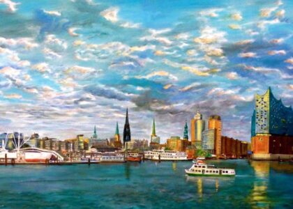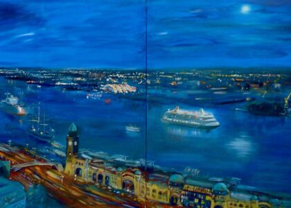 Liebe Leserinnen und Leser, die Fotos haben wir aus Datenschutzgründen entfernt. Die Setzerin Laudatio H.J. Gottschalk, Nissis Kunstkantine, 26. September 2018 Liebe Freunde der Kunstkantine, liebe Gäste, willkommen im Bernsteinzimmer der HafenCity! Mein Name ist Bernd Roloff, ich bin der Keynote – Speaker der Kunstkantine und darf Euch heute auf das Herzlichste begrüßen zur 44. Vernissage von Nissis Kunstkantine seit ihrer Eröffnung im März 2013. Zu meiner Rechten meine Assistentin Betty, die meinen Vortrag visuell durch das Hochhalten von Hardcopys unterstützen wird. Die Ausstellung gilt den Werken von Hans-Jürgen Gottschalk und hat den Titel „Zwischen Impression und Realismus – Euphorie und Nüchternheit“ Ein realistisch-impressionistisches Bild von Hans-Jürgen – was kauft man da? Diese Ausstellung wird von Stadtansichten geprägt. Stadtansichten sind Klassiker der Kunsthistorie, weil sie für den Künstler eine Herausforderung darstellt. Das Sujet ist nicht ganz einfach, weil der Betrachter das Bild mit der Realität in Abgleich bringen kann und je realistischer gemalt wird, umso kritischer wird es, zumindest, was die Vollständigkeit des Bildes angeht. Die realistische Stadtansicht nennt sich im Fachbegriff Vedute. Veduten hatten nicht nur eine Blütezeit. Besonders glücklich kann sich jedes Museum schätzen, das venezianische Veduten im Besitz hat. Insbesondere einen Canaletto. Hier z.B. eine Vedute von Canaletto mit dem Canale Grande als Motiv. Und schon können Kunsthistoriker darüber schreiben, wie realistisch eine Stadtansicht zu sein hat, um noch unter den Begriff Vedute zu fallen. Überwiegend werden auch die Werke von William Turner, zweifellos einem Vorläufer des Impressionismus, wenn nicht gar der erste Impressionist, als Veduten bezeichnet. Dieses Vedutenthema mal vorausgeschickt, um zu zeigen, dass Stadtansichten nichts mit Postkartenmalerei zu tun haben, sondern ein klassisches und nicht einfaches Thema sind. Hans-Jürgen spricht bei seinen Bildern von „Stadtlandschaften“. Stadt und Land sind ja eigentlich Gegensätze. Aber ihm wurde mal gesagt, dass man in seinen Bildern spazieren gehen kann, also ist Stadtlandschaft irgendwie doch auch richtig. Bei dieser Stadtlandschaften beginnt alles mit der Perspektive, aus der man die Stadt ansieht. Die Stadt ist Hamburg. Ich habe Hans-Jürgen gebeten, den Satz „Hamburg bedeutet für mich …“ zu ergänzen. Hans-Jürgen schaffte das mit einem Wort: Hamburg bedeutet für mich Heimat. Heimat ist eine Beziehung zwischen Mensch und Raum. Wenn Hans-Jürgen Stadtansichten von Hamburg malt, widmet er sich oder würdigt seine Heimat. Wir haben hier 6 größere Stadtlandschaften ausgestellt, von denen 3 aus der Selbstmörderperspektive, also von oben, dargestellt sind. Eines dieser Bilder trägt nun den schlichten Titel „Blick auf Stadt und Alster“, im imposanten Querformat von 2 Meter 40. Da der Titel die Perspektive nicht verrät, musste ich erst einmal überlegen, von wo man hinunterblickt. 2 Gebäude stehen zur Auswahl. Fernsehturm oder das Radisson Hotel. So, was sagt ihr? Ist es der Fernsehturm oder Radisson Hotel? Erstmal genauer hinkucken. Dann können wir abstimmen. Die Hände bitte senkrecht nach oben. Wir sind hier nicht in Chemnitz oder in Köthen. Wer ist für den Fernsehturm? Hände hoch! – Wer ist für das Hotel? Auch Hände hoch! Hier kommt die Auflösung: Es ist nicht der Fernsehturm, Menschen aus meiner Generation können sich dennoch daran erinnern, wie es im Drehrestaurant Kaffee und Kuchen gab, nein, es ist der Blick aus dem Radisson Hotel, vorher SAS Plaza genannt, vorher nur Loews Plaza Hotel. 108 Meter hoch, 556 Zimmer, Bauzeit 3 Jahre von 1970 – 1973. Der Weg zum Gemälde geht bei Hans-Jürgen vom Foto meistens über Skizzen und Studien zum Fullsize-Gemälde. Mit anderen Worten, er hat einen Plan. Er gehört nicht zu dem Typus des Spontan-Malers, der mit dem Pinsel vor der Leinwand steht und loslegt. Ich habe mich vorhin gefragt, was man denn bei Hans-Jürgen kauft. Nun haben wir schon einmal 2 Ps, nämlich Perspektive und Plan. Das 3. P steht für positiv. Bei typischem Hamburger Wetter mit Nieselregen und Graupelschauern, sieht Hamburg von oben aus wie ein schlafender Hund. Bei schönem Wetter, wie wir es dieses Jahr wochenlang hatten, reicht Hamburg an die ästhetisierenden Darstellungen von Hans-Jürgen fast heran. Schön positiv beschienen verbindet man mit vielen Gebäuden, Straße und Plätzen auch positive Erinnerungen: Am Jungfernstieg hatte ich einmal mein Büro. Im Spielcasino habe ich einmal gewonnen und bin nicht wieder hingegangen. Im Hauptbahnhof gibt es einen Stand, der lecker Baguette mit Serrano-Schinken verkauft und im Atlantik-Hotel habe ich einmal mit den Kindern gebruncht. Apropos Hauptbahnhof: Das ist ein Stichwort, bei dem ich einhaken kann. Hans-Jürgen hat 45 Jahre als Grafik-Designer und Kreativ-Direktor gewirkt und beeindruckende Kampagnen begleitet. Hier mal ein Beispiel für die Bundesbahn: Nicht durchdrehen, Bahnfahren. Ein guter Vorschlag für den Winter, der jetzt kommt. Im übertragenen Sinne drehen allerdings Manche jetzt durch, wenn sie Bahnfahren. Die Pünktlichkeit der Bundesbahn ist auf dem Tiefpunkt. Nach der eigenen Statistik sind nur 70 % der Züge pünktlich. Die Anderen kommen irgendwann. So, meine Damen und Herren, jetzt noch ein Exkurs für die Autokenner: Zu welchem Auto gehört diese Felge, die auf der Werbung zu sehen ist? Natürlich kann man an jedes Auto fast jede Felge montieren. Die Felge auf der Werbung wird aber typischer Weise mit den früheren Modellen des Porsche 911 in Verbindung gebracht. Es ist die sogenannte Fuchsfelge mit poliertem Felgenstern. Wir sprachen vorhin vom Heimatbegriff als Verbindung zwischen Mensch und Raum. Hier haben wir ein Beispiel für Ding und Raum. Die Fuchsfelge hat ihre Heimat an der Hinterachse des Porsche 911. In der Tat drehten sich die Räder beim Porsche 911 im Schnee gern durch, auch vo