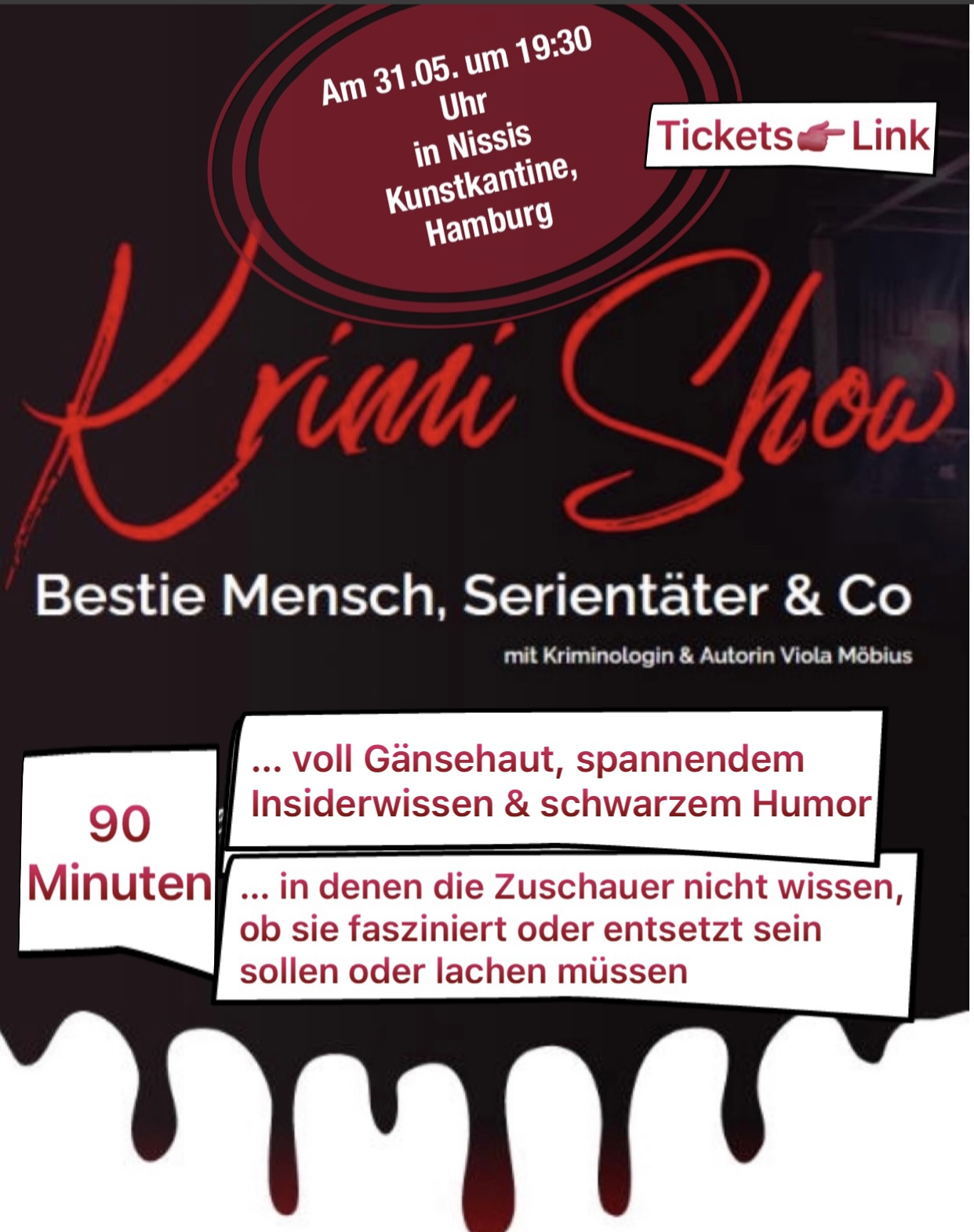 Lesen Sie mehr unter https://violamoebius.com/krimishow/ Tickets gibt es dort zu kaufen.