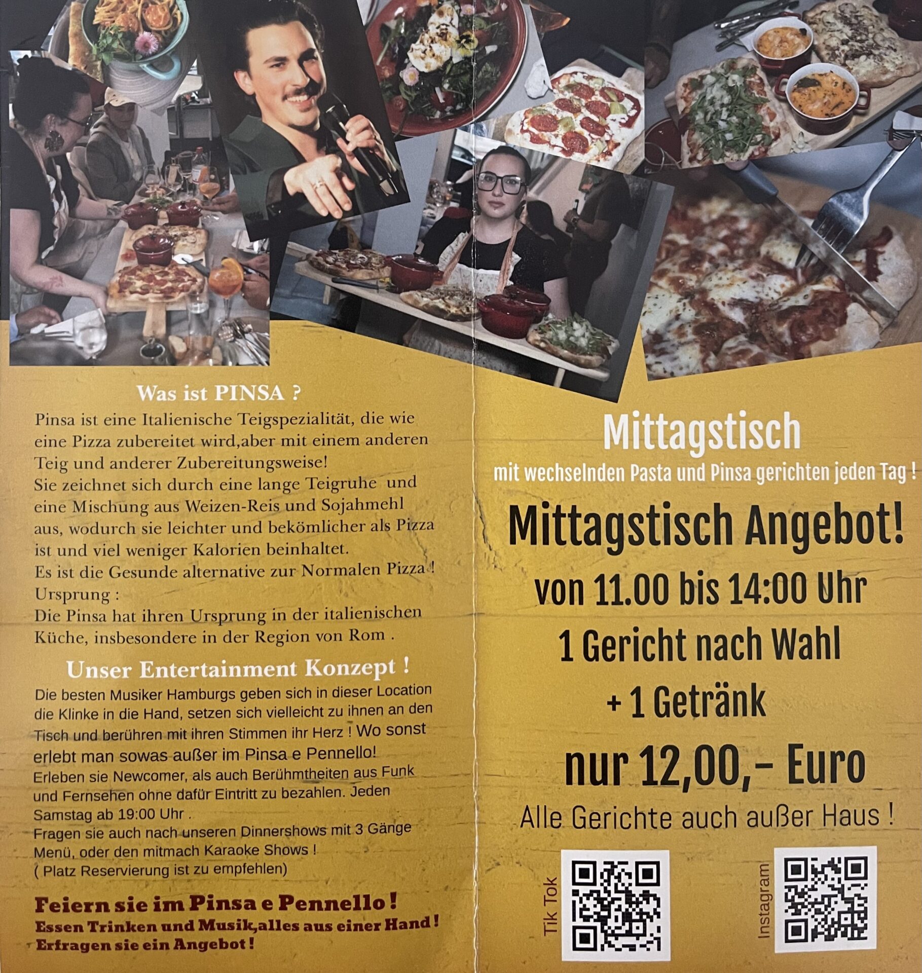 Freuen Sie sich auf täglich wechselnde Pasta- und Pinsa-Gerichte – die köstliche, bekömmliche Alternative zur Pizza aus der Region Rom.