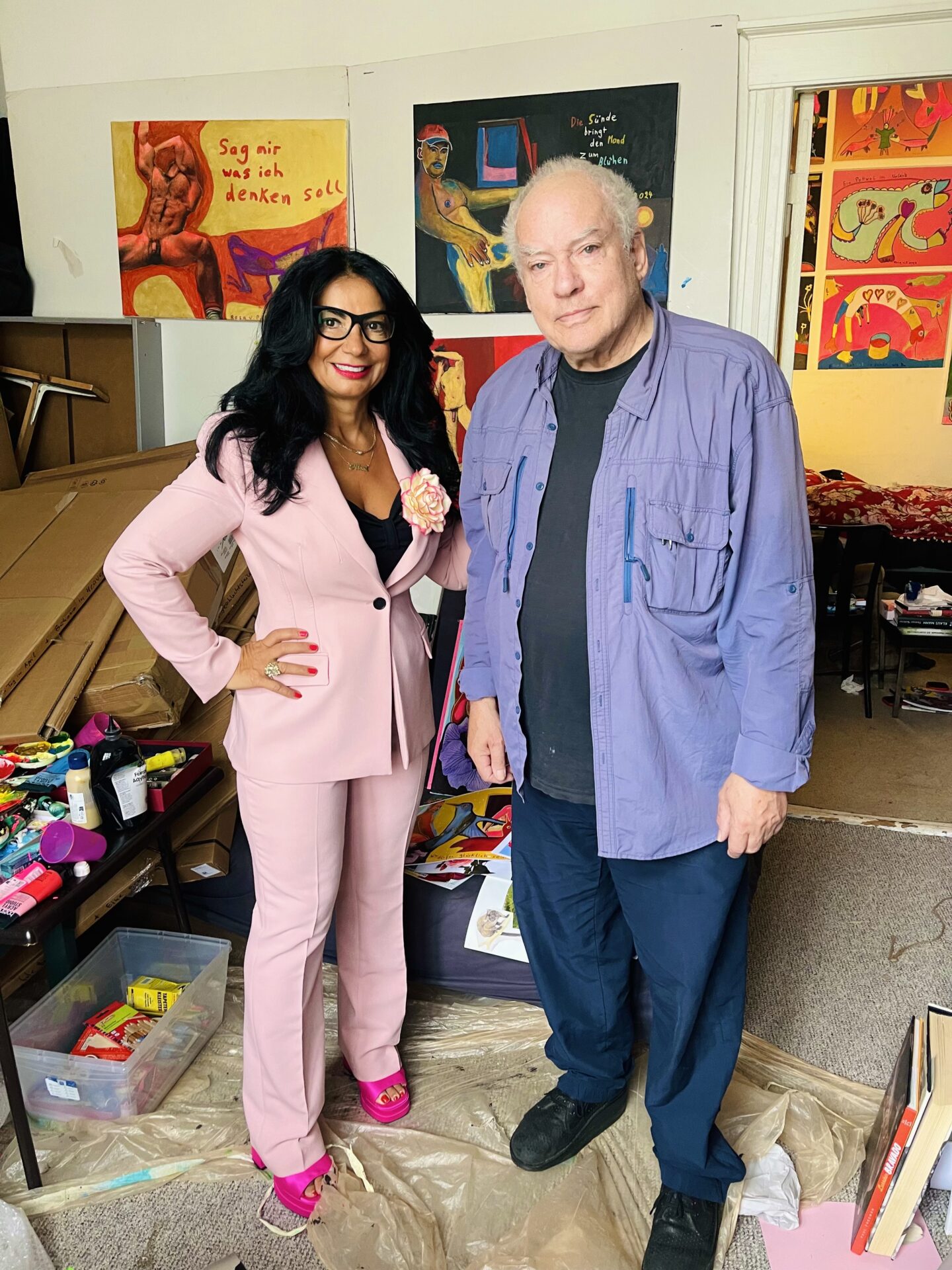 Mein erster Interviewpartner in der Premiere am 7. November wird der legendäre Regisseur, Vorreiter der LGBTQ+ Bewegung und Künstler Rosa von Praunheim sein! Nach einer Ausstellung seiner kontroversen Bilder im Jahr 2023 in Nissis Kunstkantine durfte ich diesen beeindruckenden und höchst interessanten Menschen und Ausnahmekünstler persönlich kennenlernen und mit ihm plaudern.