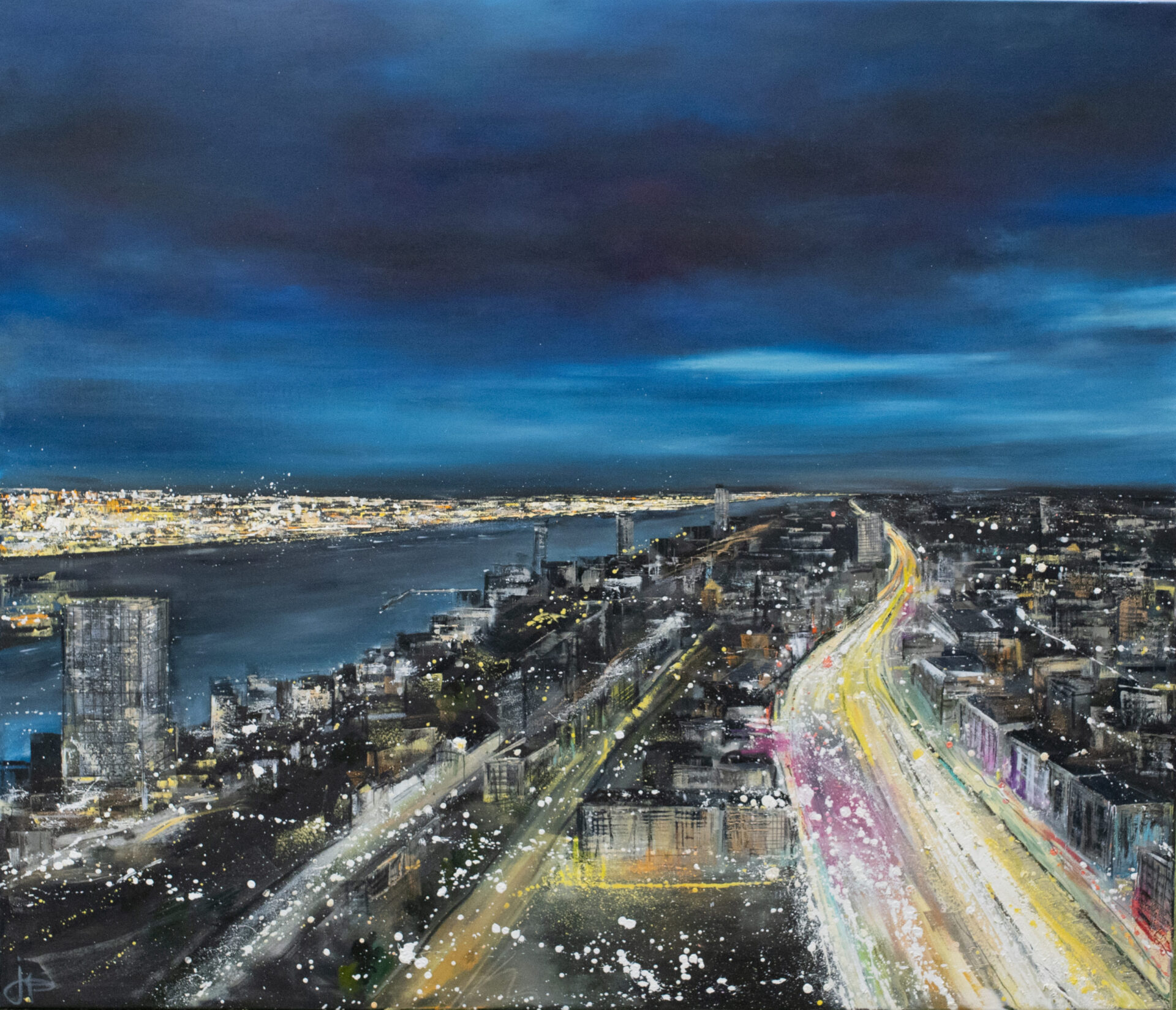 „Clouds – Tanzende Türme“ (2017), Jeannine Platz, Öl auf Leinwand, 120 x 140 cm